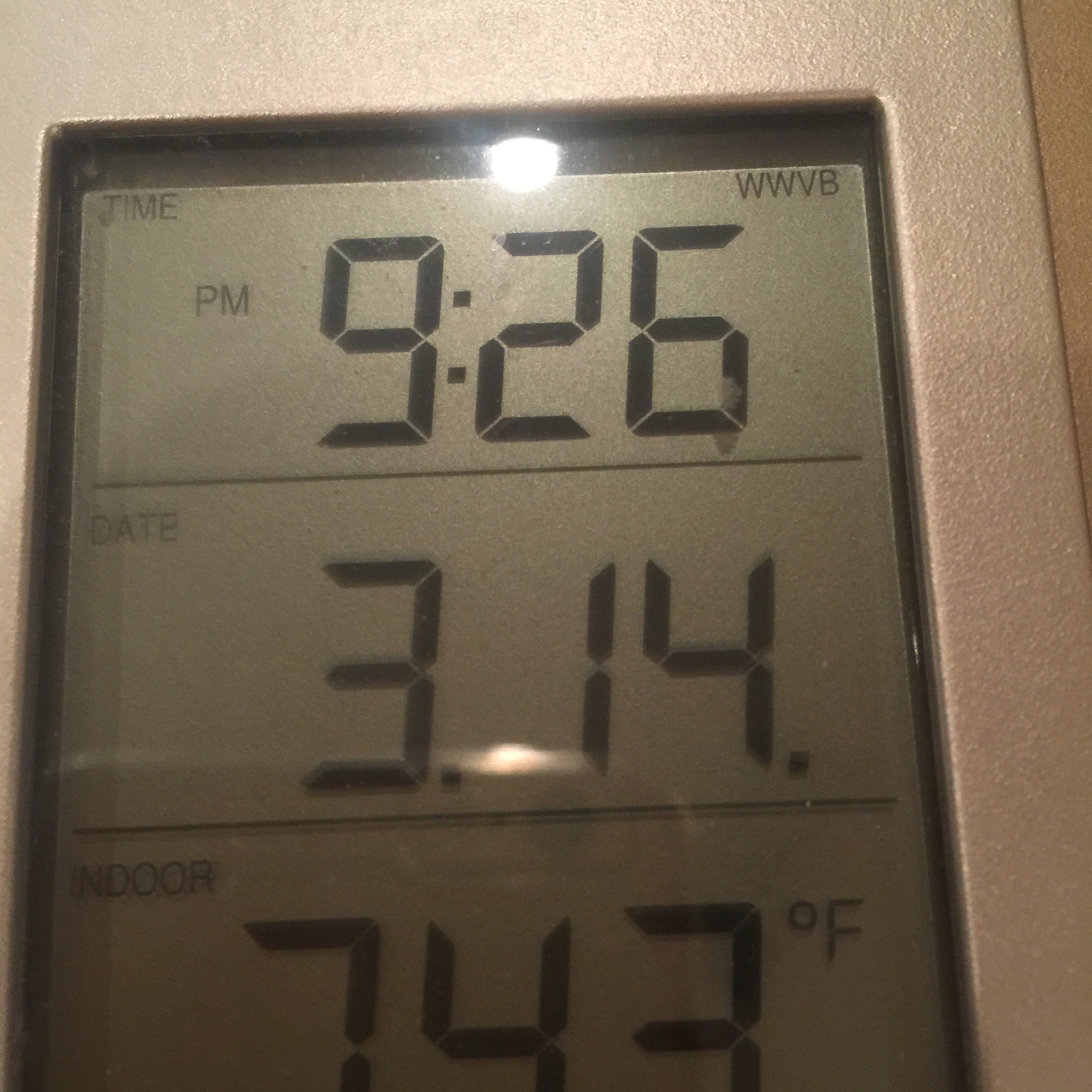 March 14, 2015March 14, 2015 Happy Pi Day My mom and dad dropped off a chocolate cream pie to celebrate Pi Day. 3.1415926 3-14-15 is today. time is 9.26pm So, we eat pie! Share this: Click to email a link to a friend (Opens in new window) Email Click to share on X (Opens in new window) X Click to share on Facebook (Opens in new window) Facebook Click to print (Opens in new window) Print Like Loading... Related