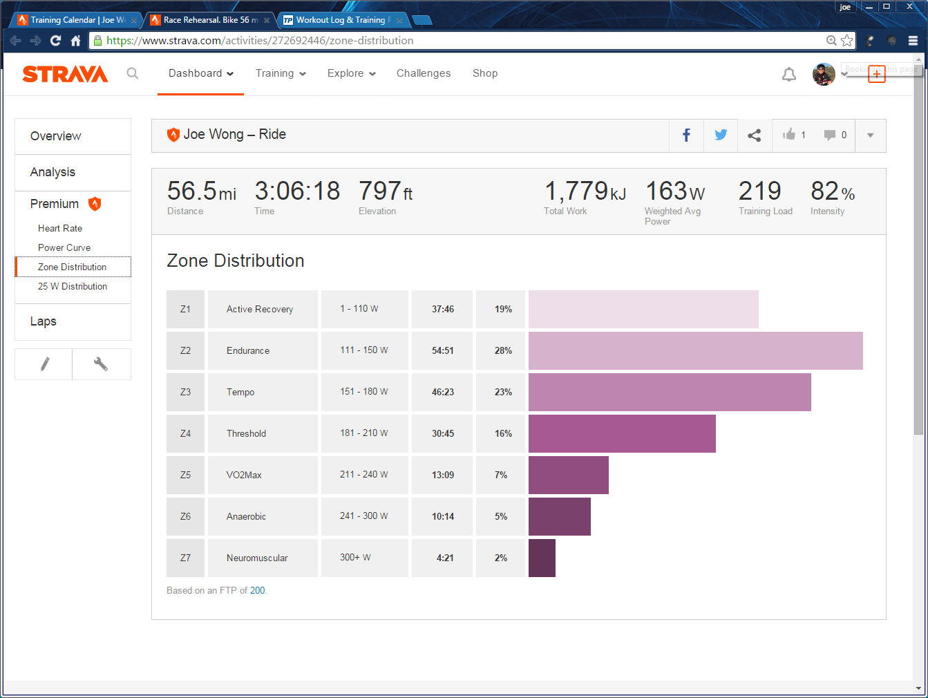 56.5 miles, 3:06 moving time, 797 ft elevation, 86 suffer score, 19 trophies