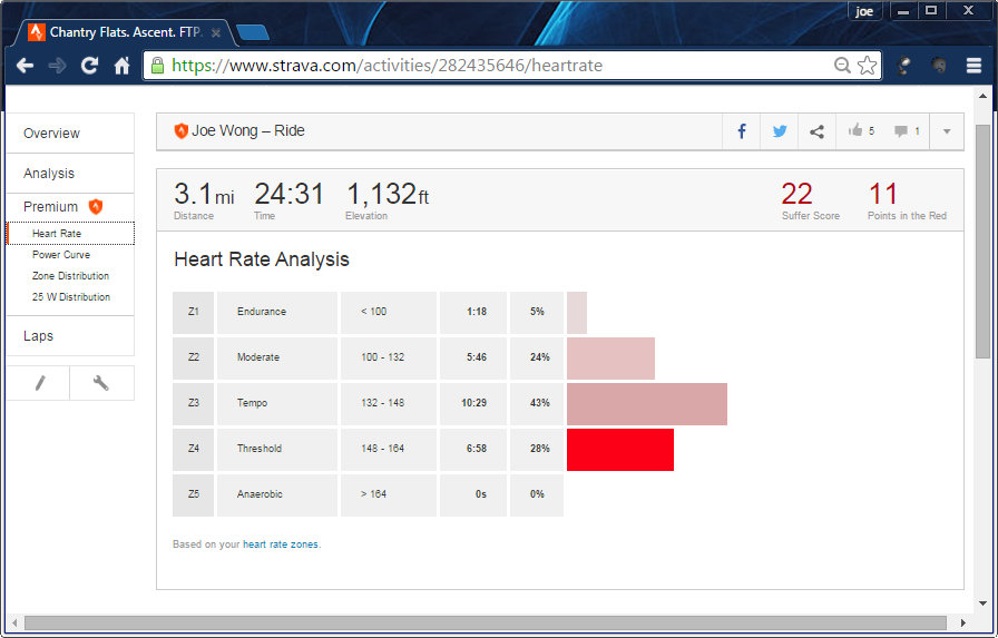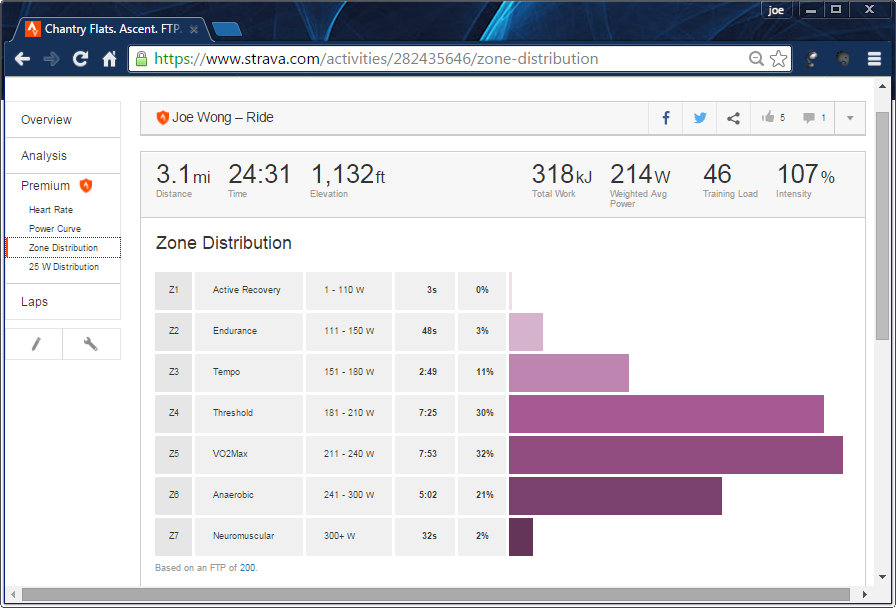 FTP Climb: 3.1 miles, 1,132 ft elevation, 24:31 moving time, 11 trophies, 214 weighted ave power.