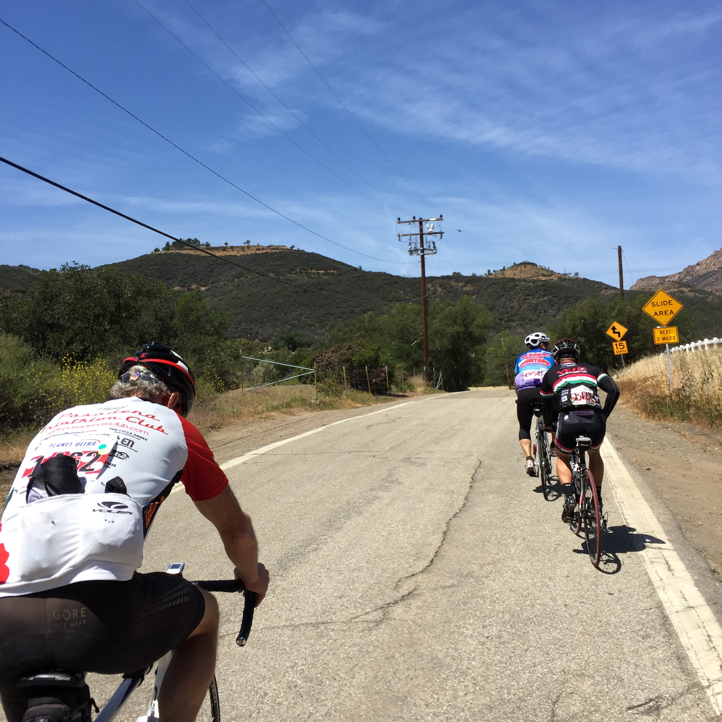 Decker Canyon is a crazy 10-15%. Super hard 3 mile climb. It was hot in this section too. I was in a dark place. Tried to put on a smile at the rest stop, but I didn’t fool anybody. My allergy meds had long worn off and the heavy climbing led to coughing fits. I took several mini breaks to calm my breathing down and then continue. Glad I made it through.