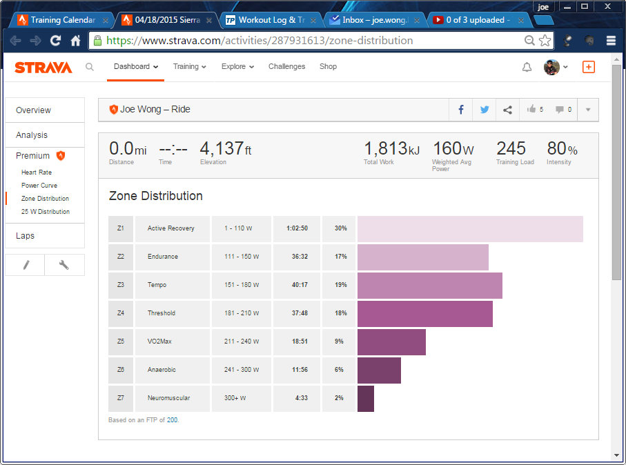 Pasadena Tri Club Saturday Ride. It was a kind of race rehearsal for Ironman St. George 70.3, which is a hilly course (2500 ft of climbing). This ride had a bit more than that, but my legs got the idea. (Compared to last week’s Mulholland Challenge, this was a walk in the park.) We started in at the usual Starbucks in Sierra Madre and rolled to Encanto Park in Duarte, where we picked up a few more. We rode up the San Gabriel River Trail Bike Path to the end, and continued up Highway 39, San Gabriel Canyon Road. We saw the San Gabriel Dam, and the reservoirs which are scary low right now. California is in a huge drought. I felt good on the climb up. We turned right at East Fork and re-grouped at the Cafe. I had some family stuff at home and was considering flipping it at the cafe. But, since we were hammering it pretty good, we made it to the cafe by 9:15am. I decided to continue the full course up the Back Side of GMR (Glendora Mountain Road), which is about a 5 mile climb, 6% grade. I stuck with Bill, Dave, David, and Luis. I love the descent down GMR. No cars or motorcycles today; it was awesome. We rode along the foothills back to Sierra Madre and finished a iced coffee all before 11:30am. Home in time to chill and have lunch with the family. PS. I tucked Mio Link sensor under my cycling shorts on the top of my thigh. It worked great. One less wristband.
