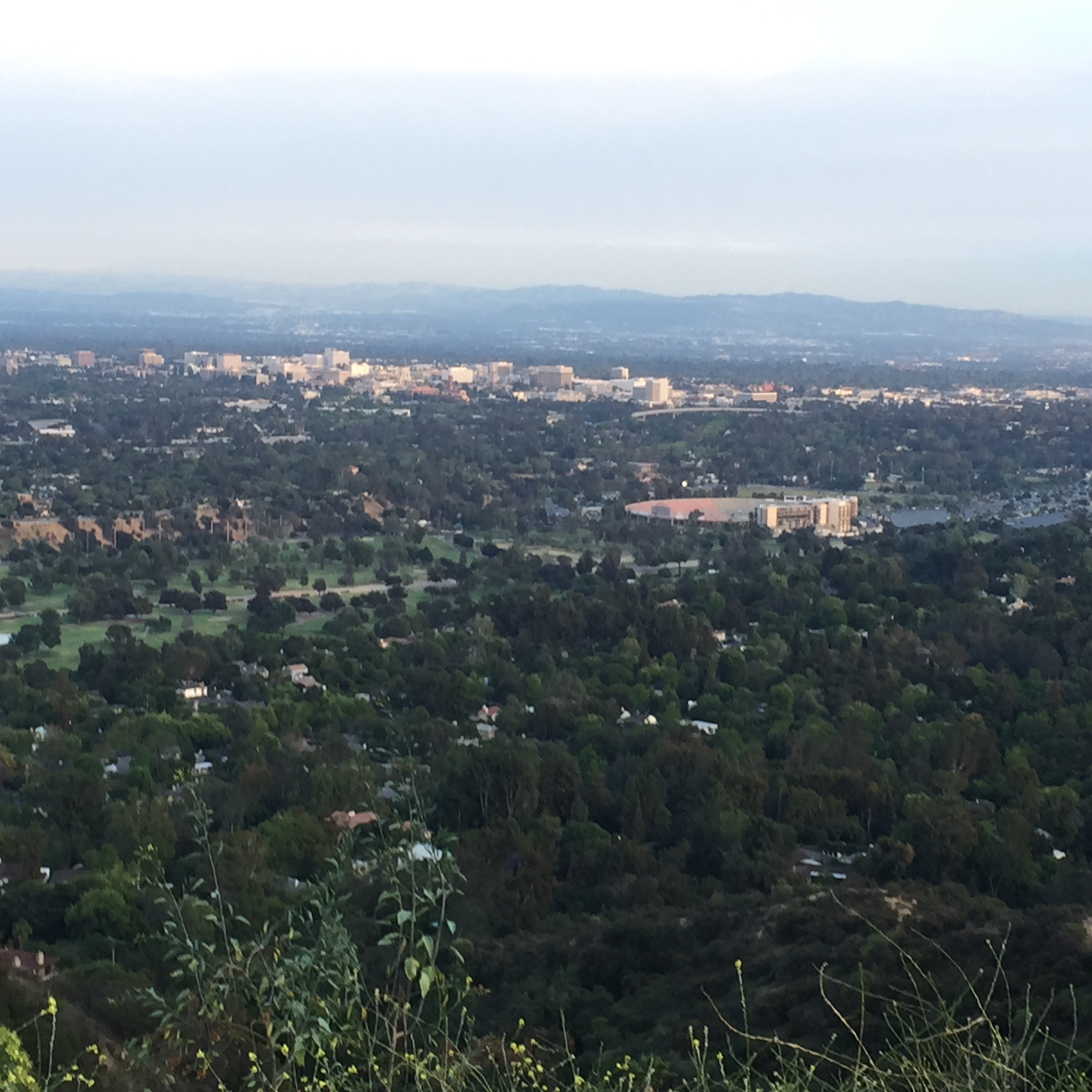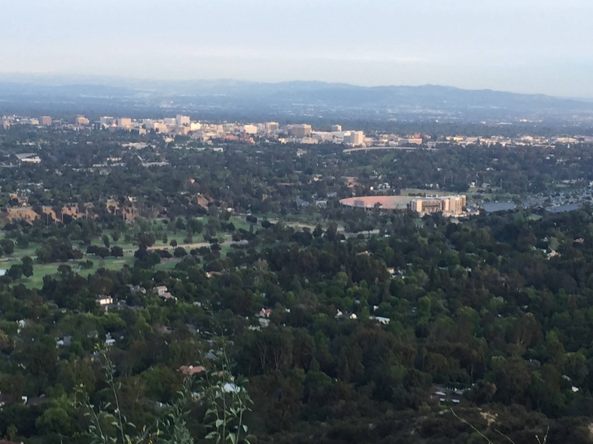 A cloudy day gave way to peachy sunset. PTC climbed the hills around Pasadena. We started at the Rose Bowl. Linda Vista to Descanso Gardens. Up Hampstead, across Inverness, up Chevy Chase. Up St. Katherine, 7-11% grade. Down St. Katherine to Inverness and Linda Vista. Up Glen Oaks. Down Patrician and back to the bowl.