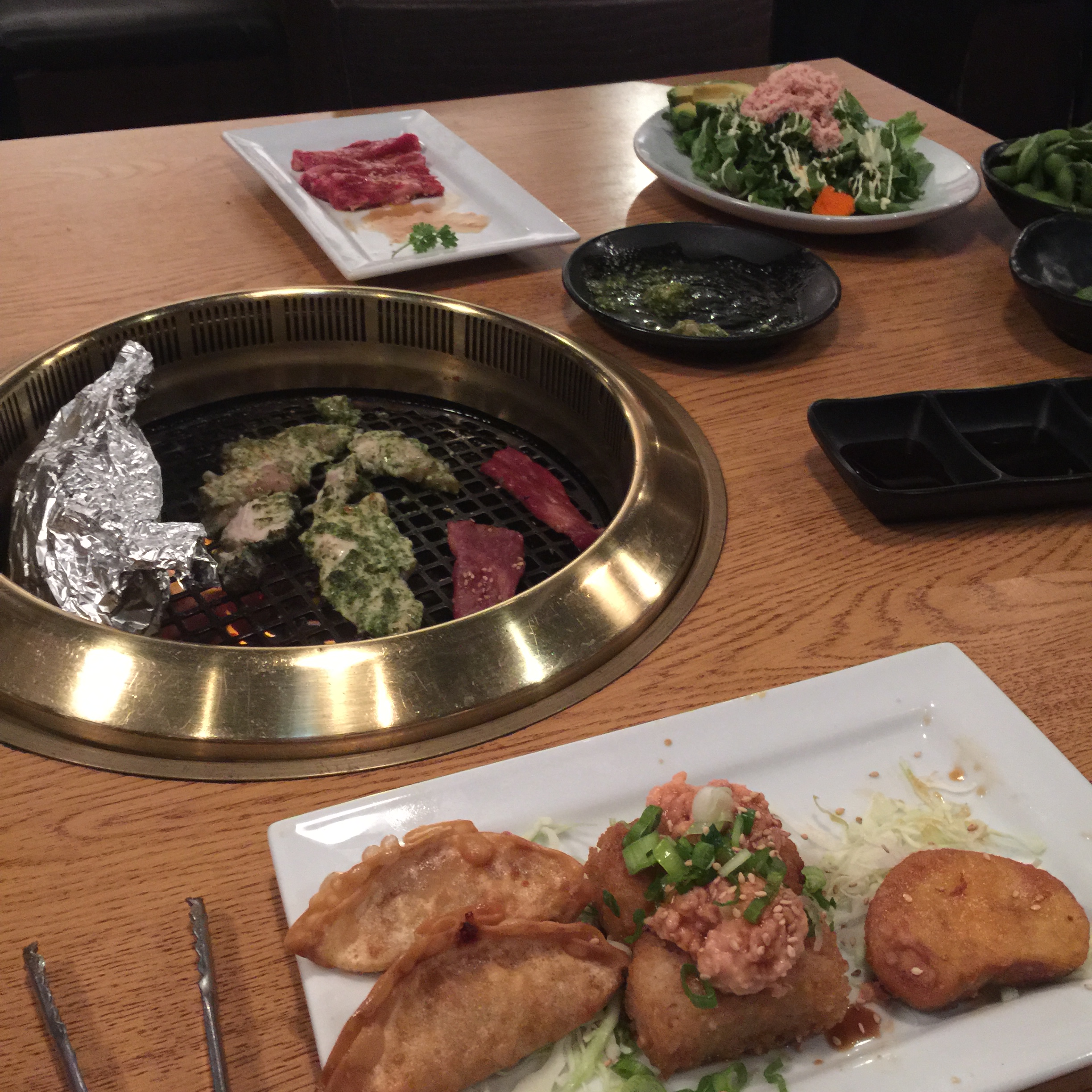 Last week we went o Gyu-Kaku in Pasadena. Japanese grill. We chose the meaty full course. It was wonderful. You do have to cook it yourself, but it actually works for us. I like my meat medium rare and my lovely like well done. The meat quality was terrific. We were stuffed. It ended with a Smores that was fun. Plus, we got there during happy hour and got $2 beer!