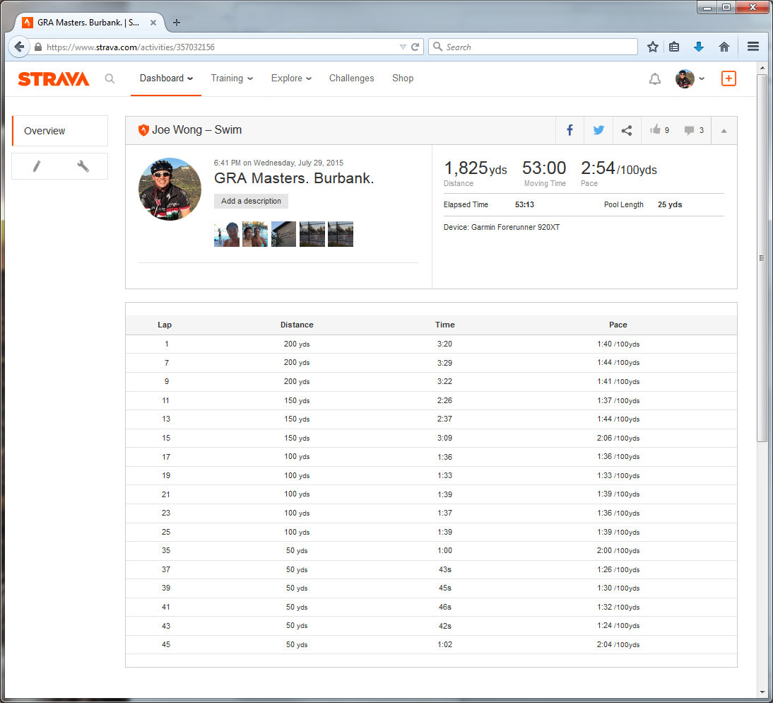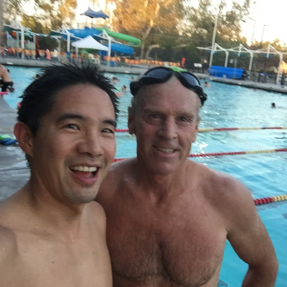 On a warm summer evening, I swam with the Golden Road Aquatics masters at Verdugo Park in Burbank. I swim harder with people in my lane. I actually try to kick too. Usually, I don’t kick, cuz triathletes save their legs for bike and run. I saw a few friends over there. Mike, Gregg, Paul, Adam. Met a few new friends too, Luca. I had to pick up my GoPro that I left at the pool over the weekend. The water is noticeably warm. The public pool at Burbank keeps a cover at night to reduce evaporation, but it traps the heat and it snowballs the heating effects in the summers, er fireballs the effect. Anyway, I was sweating in the pool, and that’s a little weird.