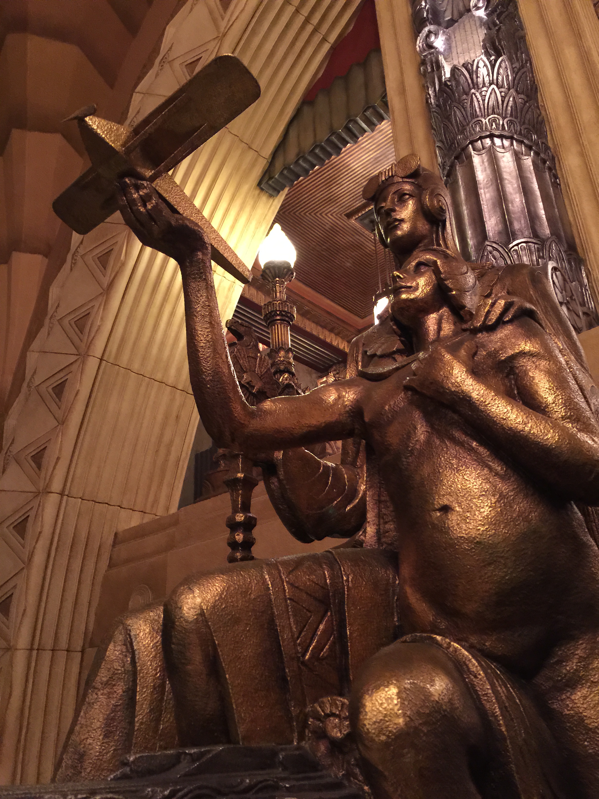 The Pantages Theater is in Hollywood, on Hollywood Blvd, with the walk of stars passing right in front of it. There’s been a lot of buildings upgrading near by. The interior Art Deco details in the lobby and main theater are exquisite. Fun to just walk around.