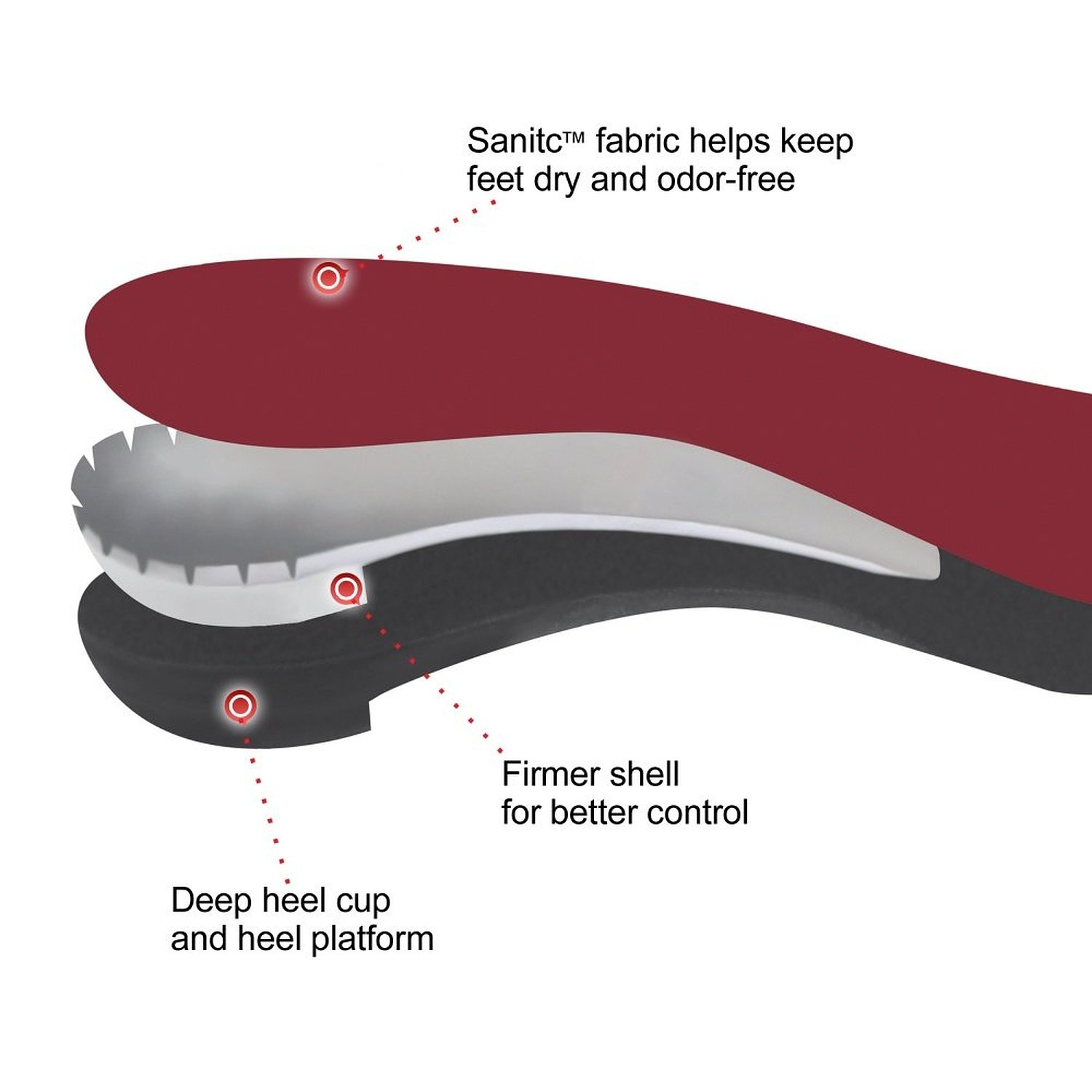 I have flat feet and I put stiff arch insole in all my shoes, running shoes, and dress shoes. Power Step by Pinnacle Maxx. I actually rip out the insole from my Asics running shoes and dress shoes and put these in. I can run for miles in these. They are stiff through the arch and then bend at the ball of your foot, and that’s where they wear out.