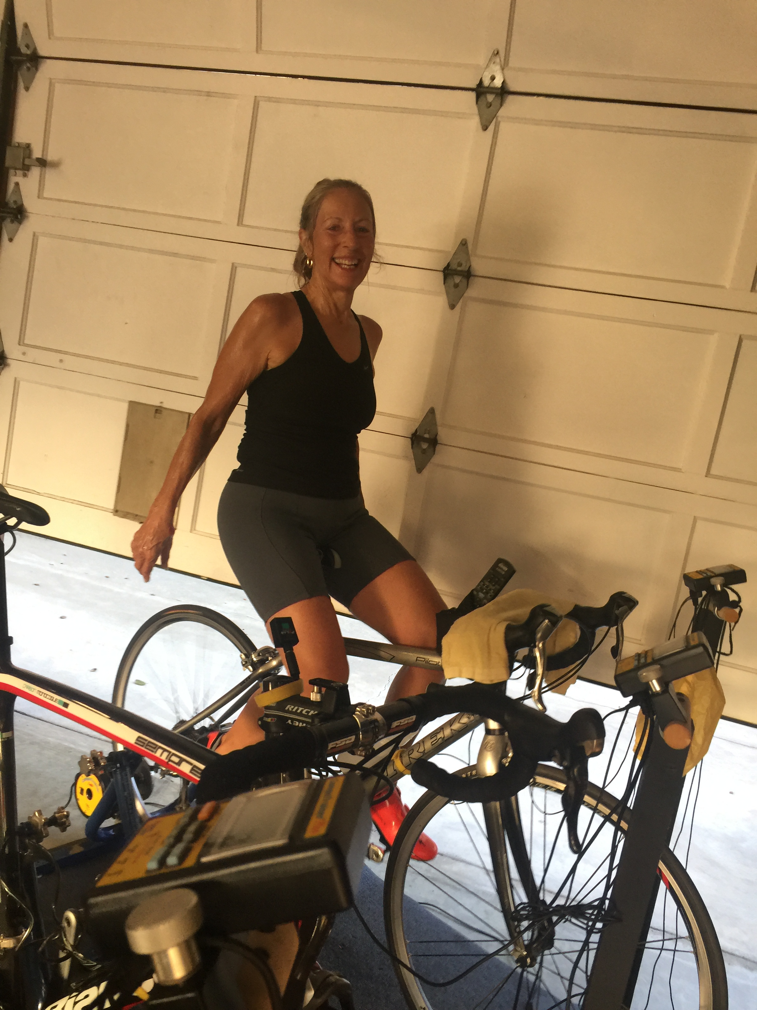 Intervals on the CompuTrainer with George and Lynda. It was a tough morning session the other day. Whew! I am settling into my Cervelo Dual TT bike by going down into aero during most of the workout. FTP was set at 215W, until Bill came by and bumped it up to 225W. This program doesn’t care what gear you’re in, it add resistance till you hit the 115% of FTP watts. It’s important to keep up the cadence or you just flame out.