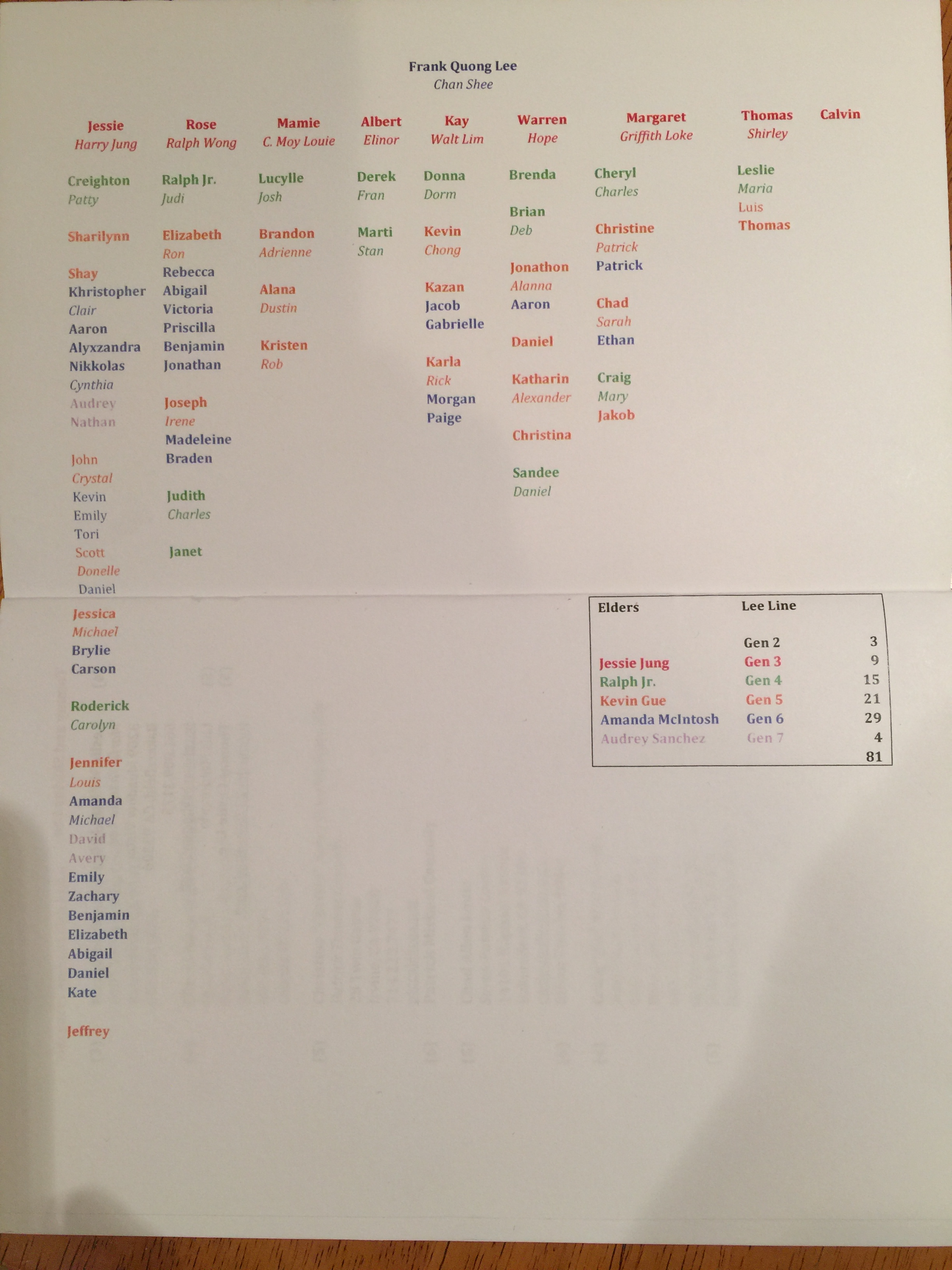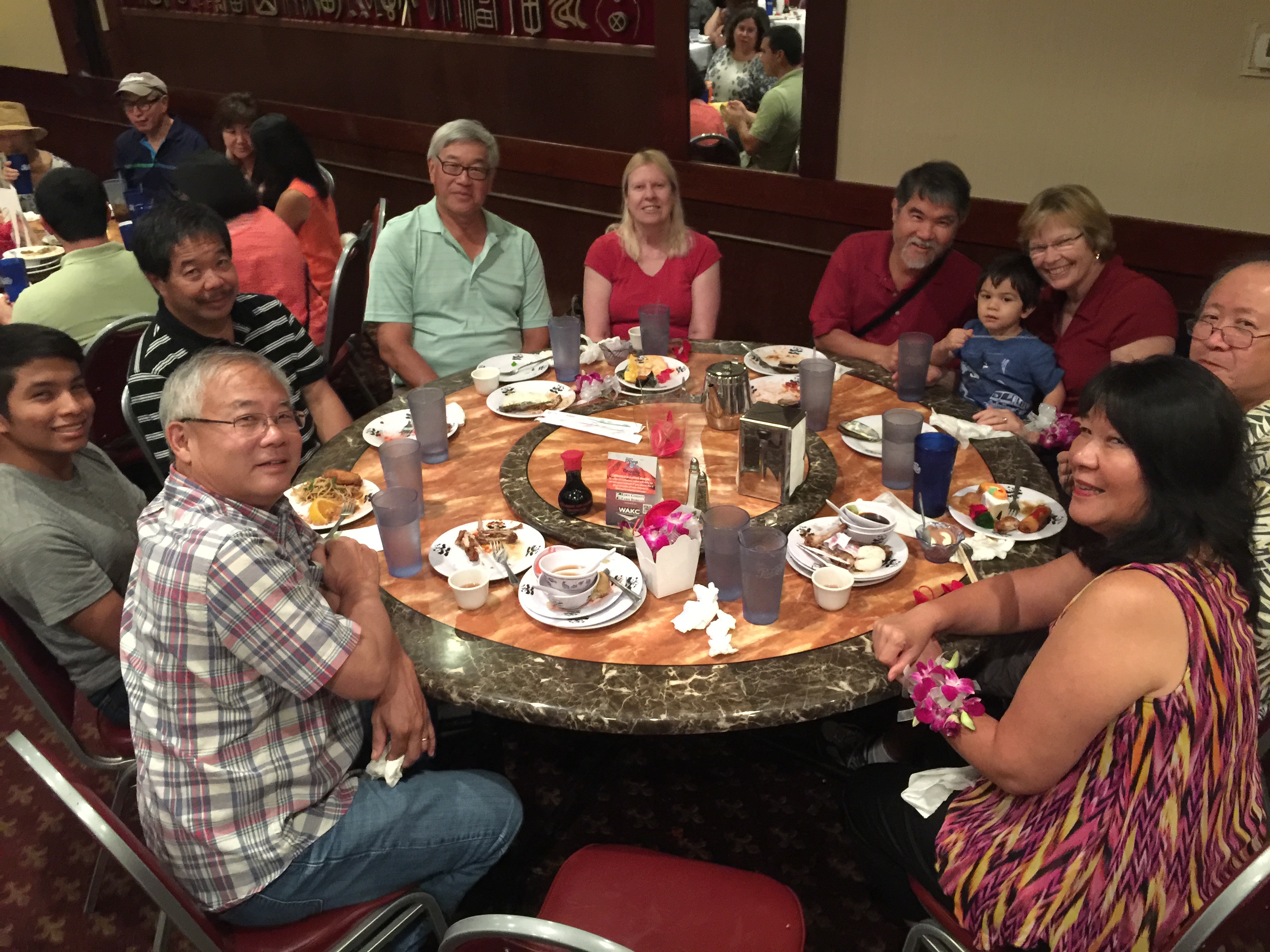We took pictures with Generation 3 and 4, which is my Dad’s Generation. We took pictures of Generation 5 with hats. And we took a picture with everybody there, which is at least 60 folks. The demographics are very interesting you can see our family is a melting pot of all races, backgrounds.