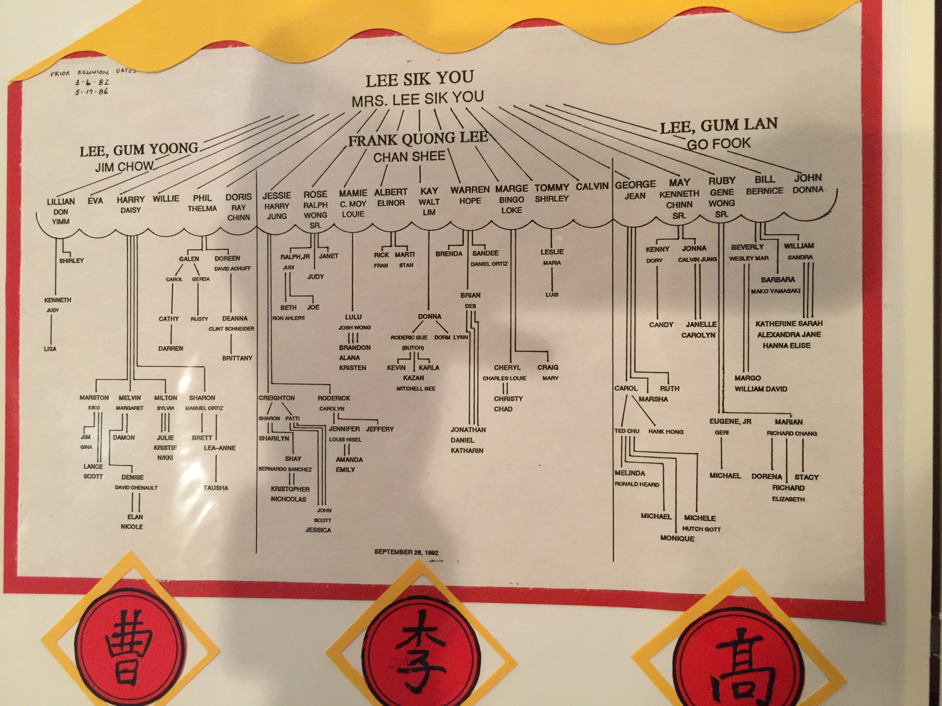 The Family Tree is a little unique with Three Families : Chow, Lee, and Go sides. Long story.