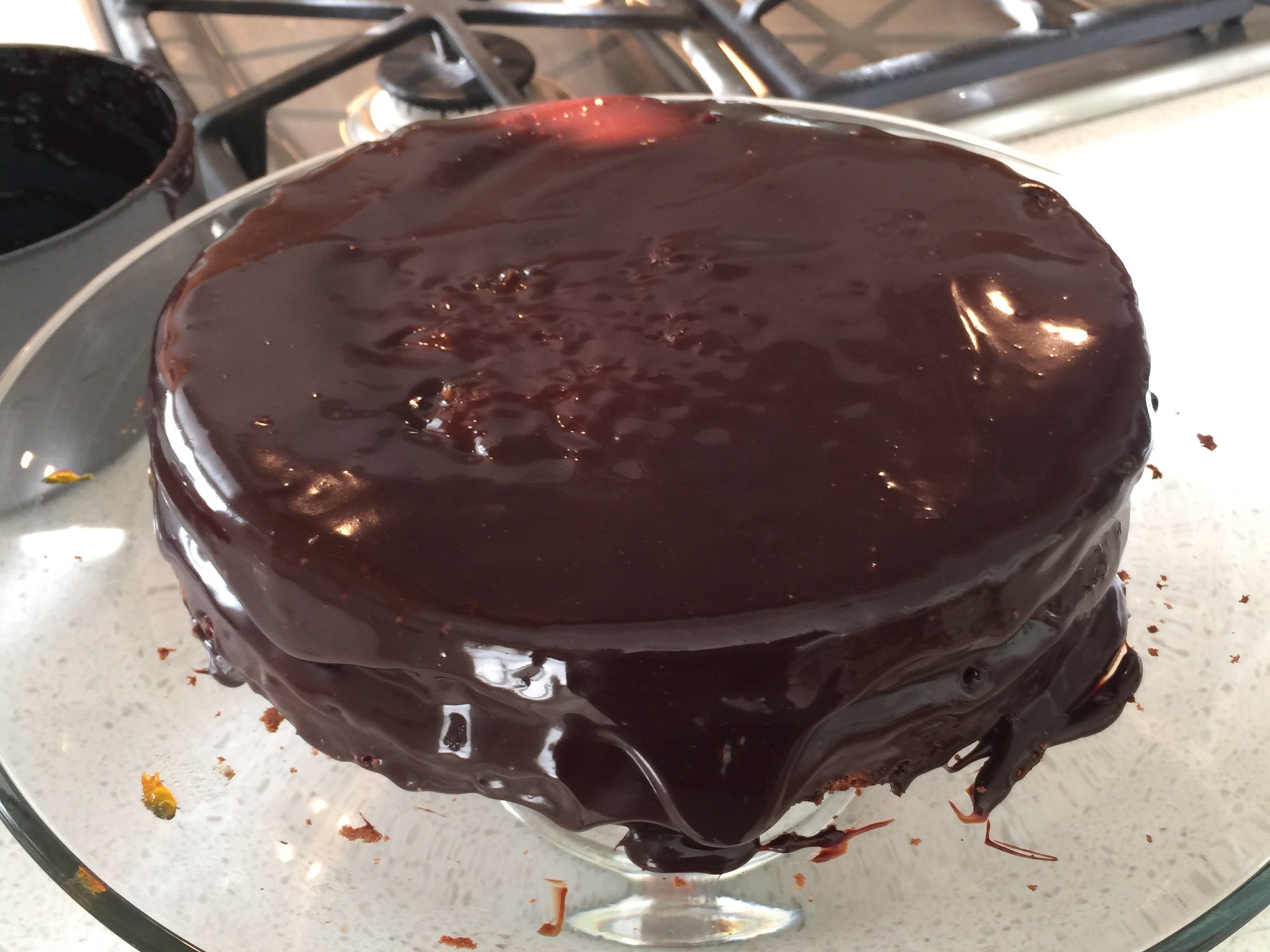 I used epicurious’s recipe for the Sacher Torte. Sacher Torte is a chocolate layered cake with apricot glaze and chocolate glaze.