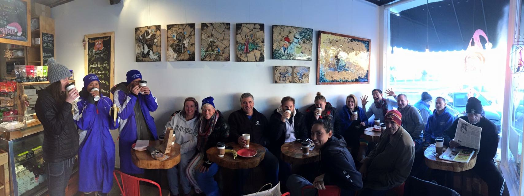 34F air temp. It was freakin’ cold this morning, but the water was mice and warm. Julie was the coach today and I got a pic with her. There was a professional photographer Doug at the pool this morning for GRA. (I’m not sure on the whole story there.) I swam with Heather, Ryan, and John in the slow lane. The benefit of the slow lane is the warm jets from the heaters, Ahhhhh. One set was a blend of IM and free. My butterfly stroke is tragic. Hilarious at best. I took on some water during that set. Glub glub. After the swim workout, we had a great coffee time at Simply Coffee.