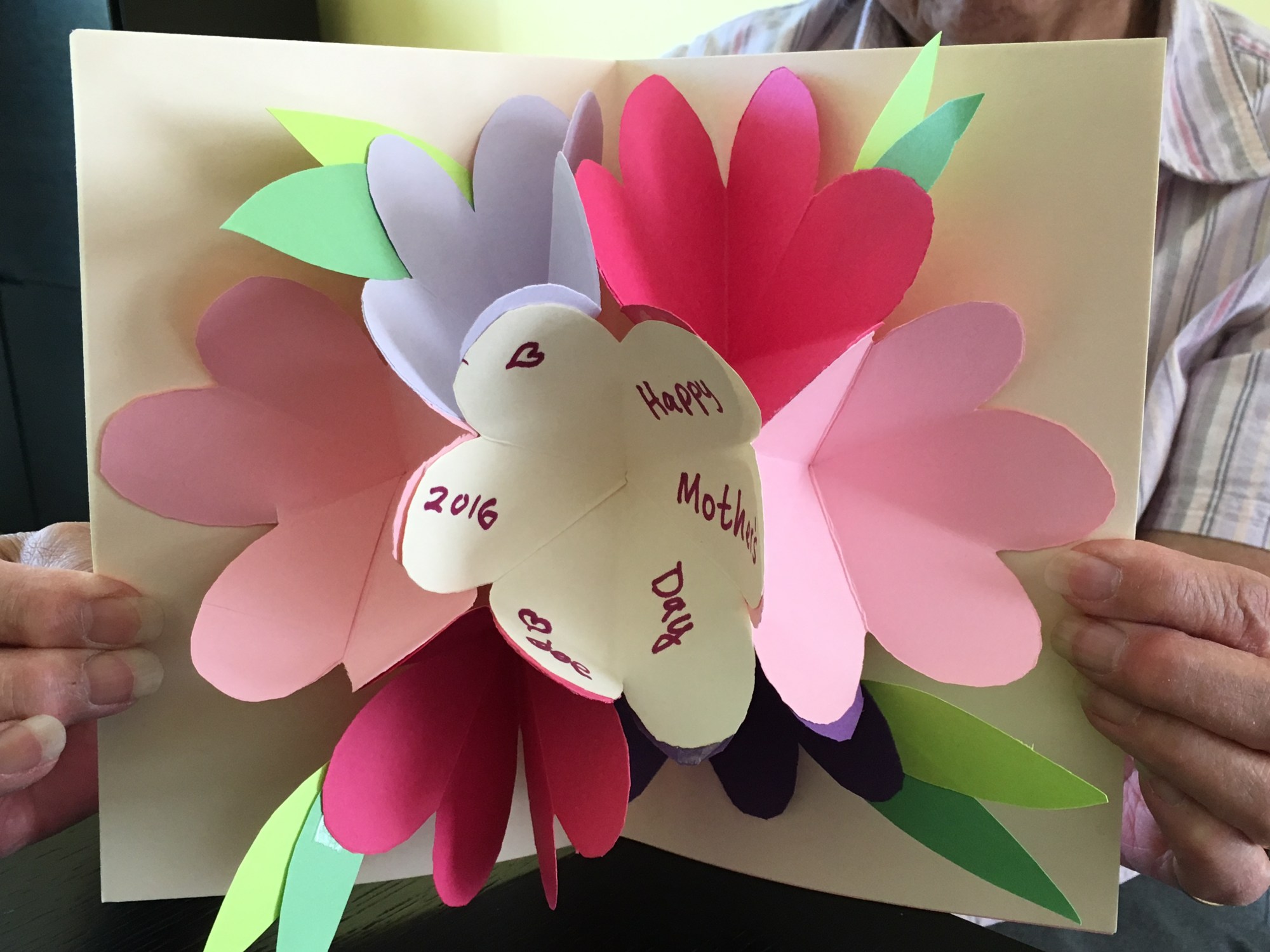 We celebrated Mother’s Day early with my mom (and dad). I made her a special pop up card. We took them for Japanese food for a low key, but yummy dinner. She brought with her a Porto’s chocolate raspberry cake. It’s fun to hang out with my mom and dad.