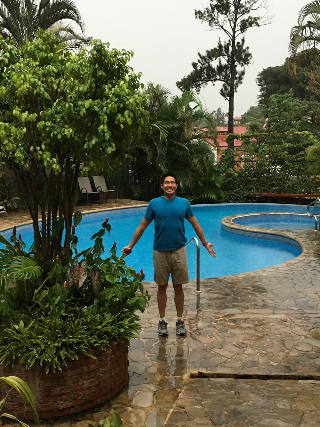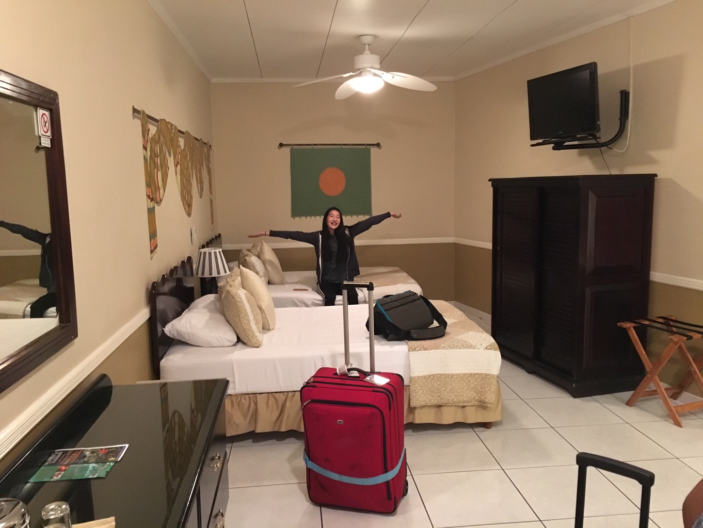 When we walked out of the terminal, it was lightning and thunder and pouring heavy rain! Discover Corps guide Wayne met us with a sign and had the van pick us up. We rode over to the hotel nearby. Wali the driver and Wayne gave us some local facts about Costa Rica. Seven provinces. Active volcanos. San Jose is the national capital. Rainy and dry season. We’re in the rainy season now obviously.