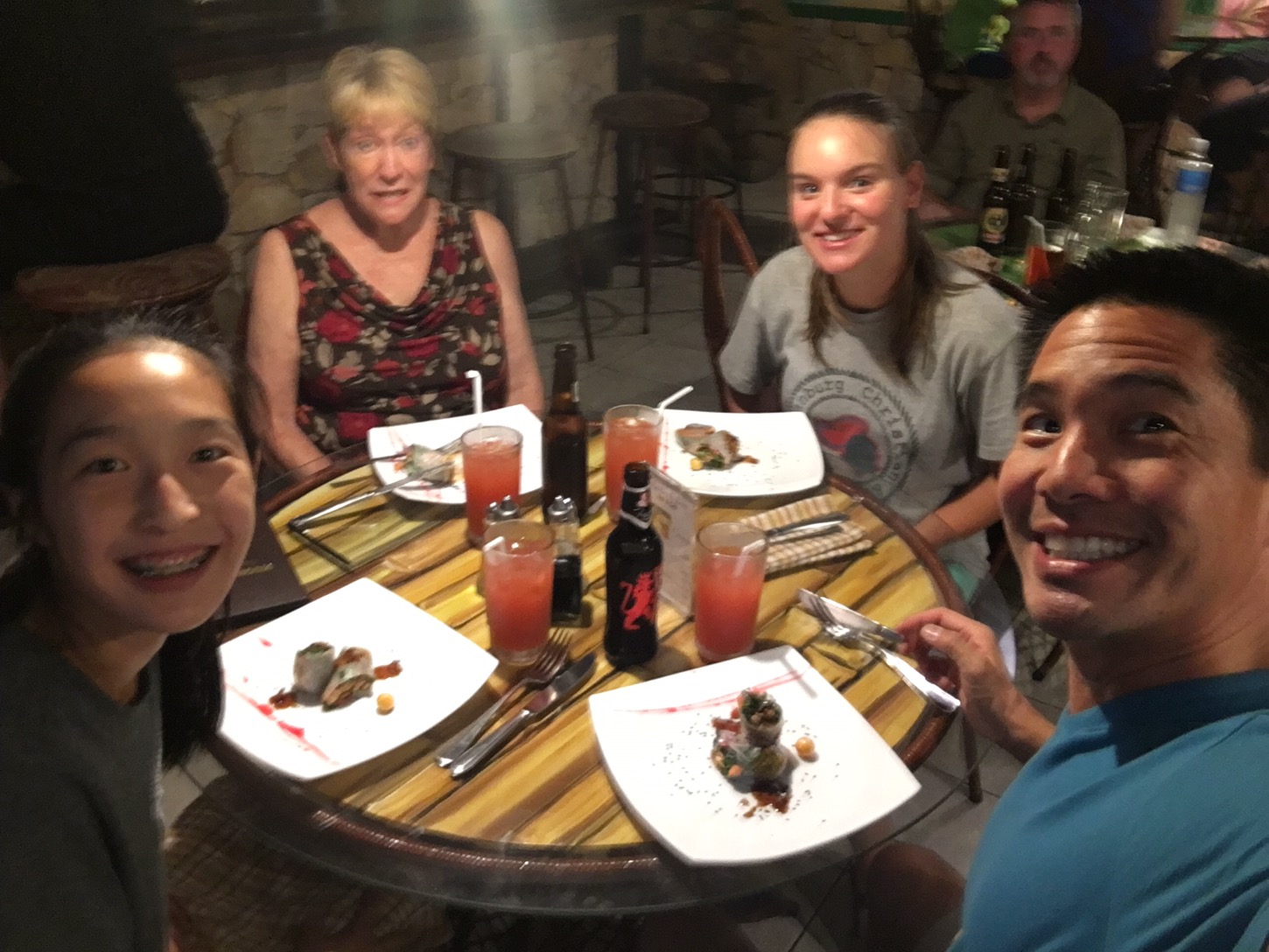 At the hotel, we met a couple more family here on different trips. We had dinner with another teenager and her grandma from South Carolina. Wayne was an hour late for dinner by accident. The food was okay at the hotel restaurant. Seafood spring roll. Mushroom chicken. Lemon pie. Coffee. Wayne says there’s one more set of people arriving at midnight. We’re driving down to the Uvita beach where our home base for the week. Discover Corps is a volunteer/ eco/ education / vacation. There’s training times. There’s work times. There visit the national park times. Wayne told his story. His dad was a coffee farmer. His family was a wildlife poacher. He went to the US for a bit and then returned and understood that he needed to protect the environment and animals. Discover Corps might not change everything overnight. But the education of the little kids will teach a generation of respect and culture.