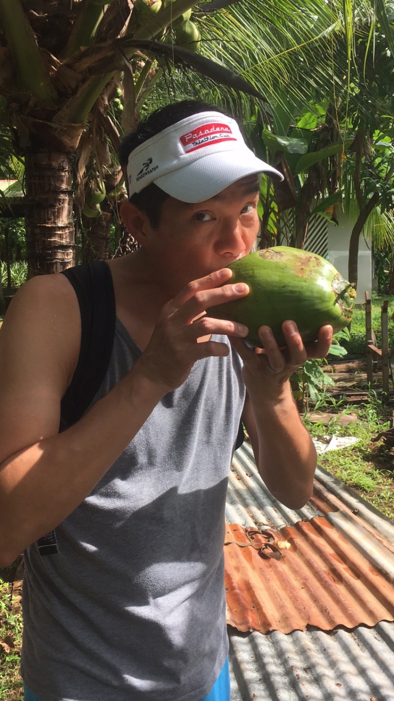 Pineapple, guava, mango, papaya, banana, Heart of Palm, avocado, bean trees. We tasted his fresh bananas off the tree. We sipped fresh coconut water out of a fresh coconut. We tasted the fresh heart of palm that Miguel hacked off. Miguel dug up a yuca to show us the potato like root.