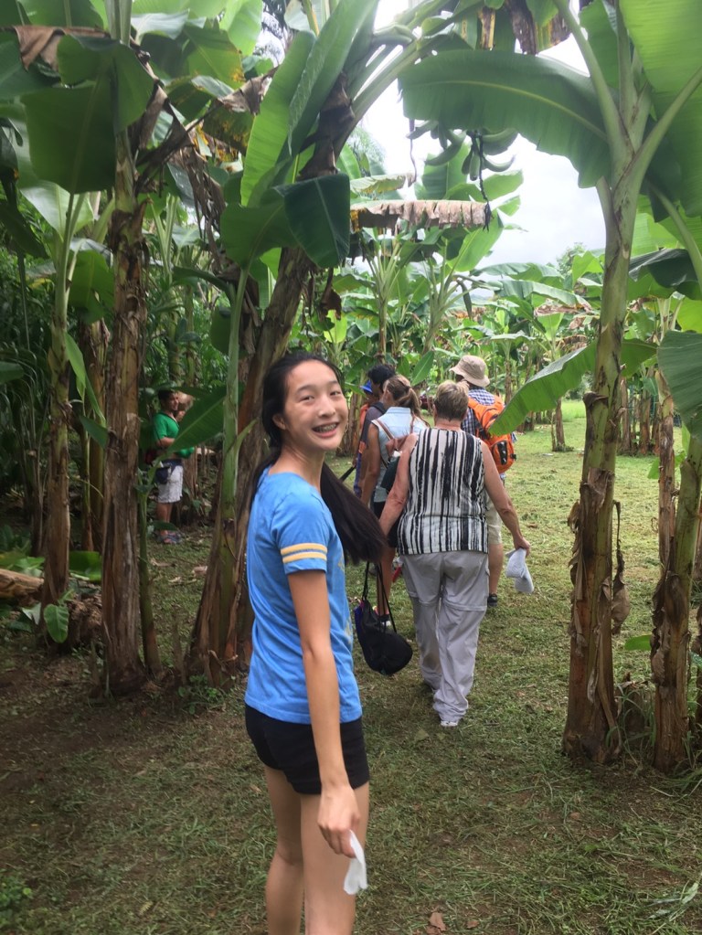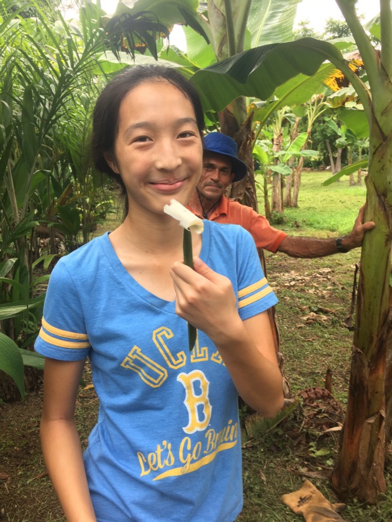 We walked up the road to the local farmer Miguel. He showed us the local fruits and vegetables that he grows on his farm and how he harvests them.