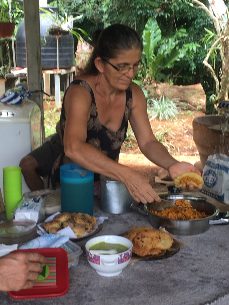 We hiked through the rain forest up to the top of the farm where Miguel’s wife cooked up some local snacks for us. Yuca pancakes with guacamole, fried yuca balls with rice and beans filling. Tacos. Horchata. Lemonade. Sweet rice dessert.