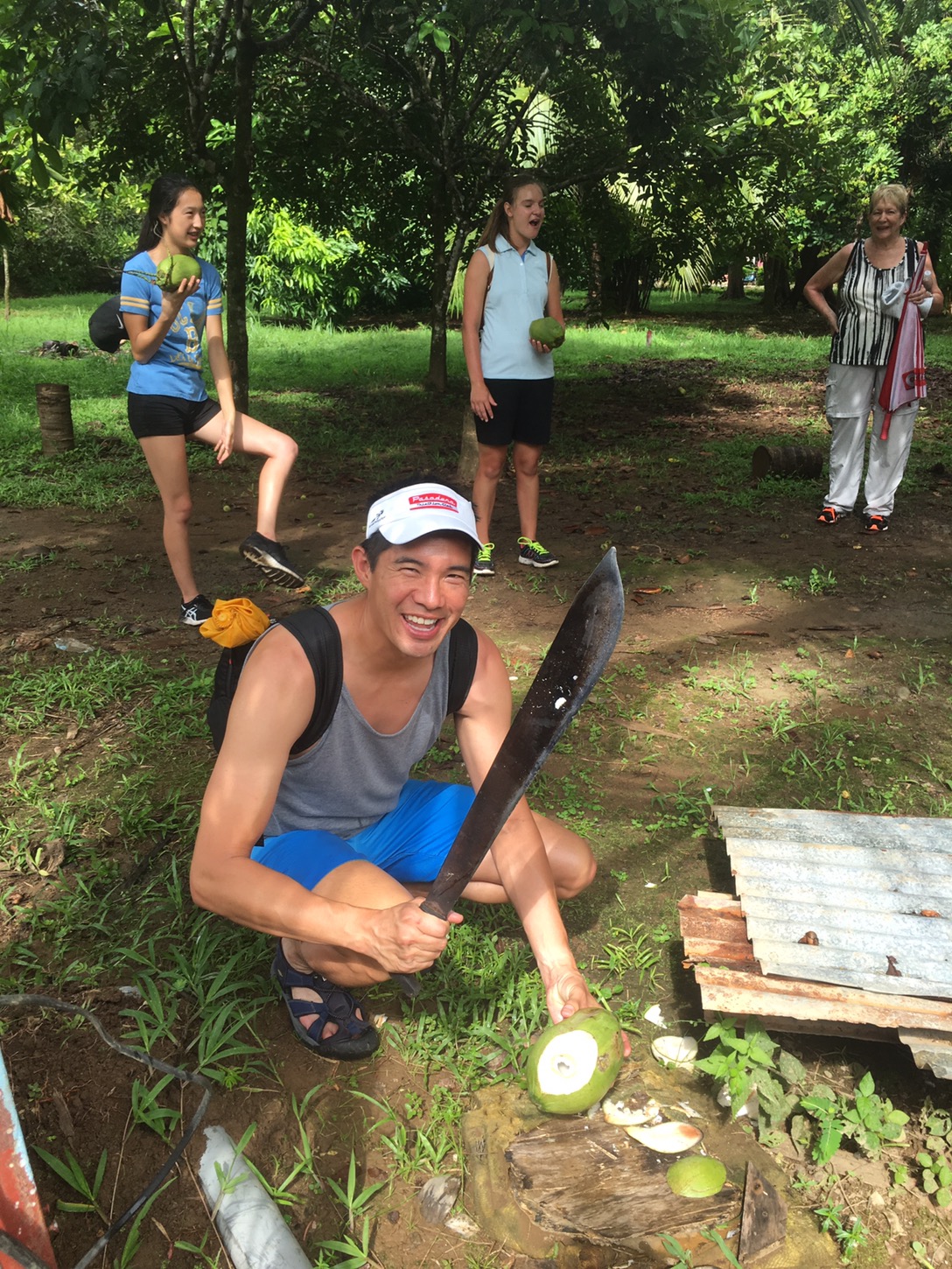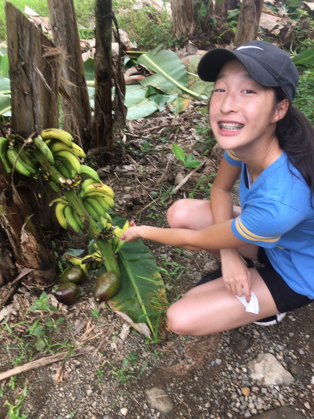 We walked up the road to the local farmer Miguel. He showed us the local fruits and vegetables that he grows on his farm and how he harvests them.