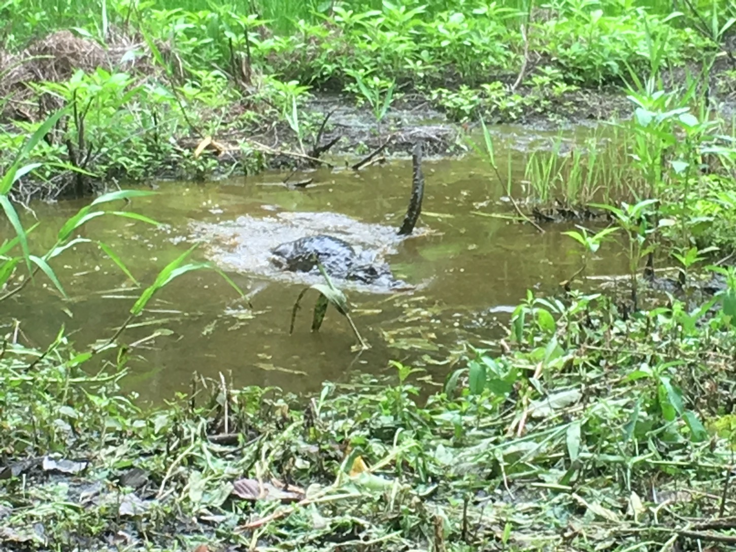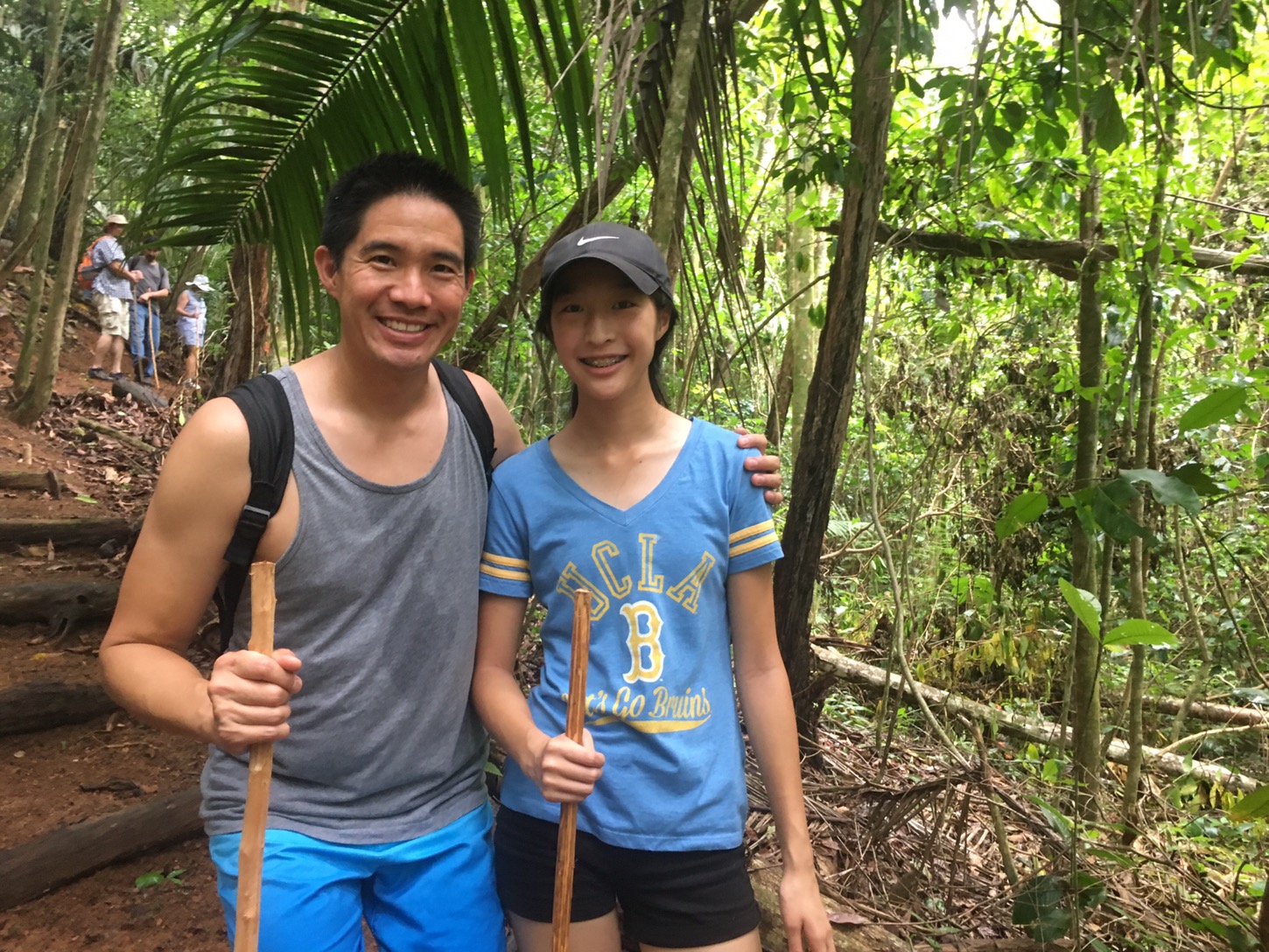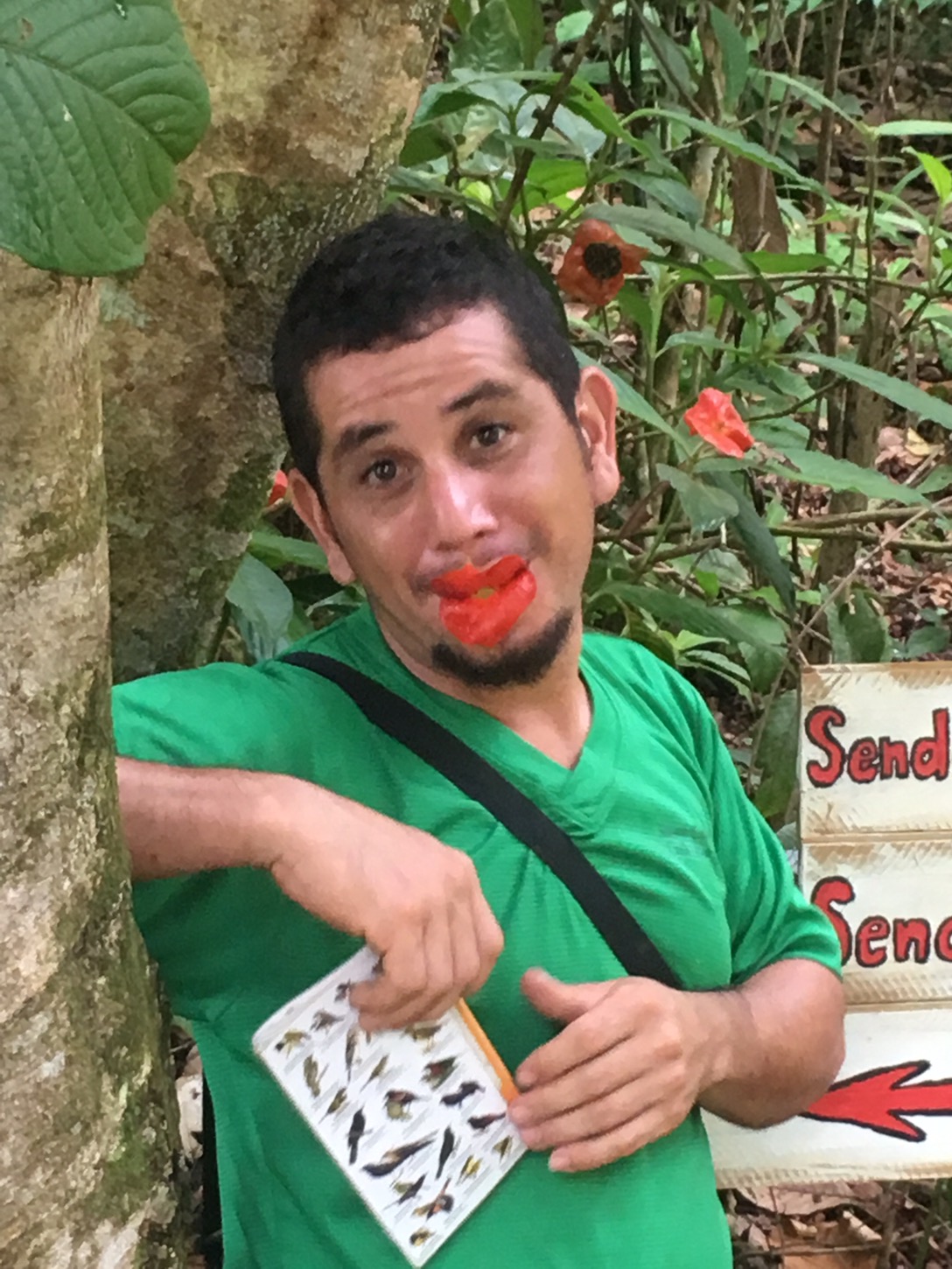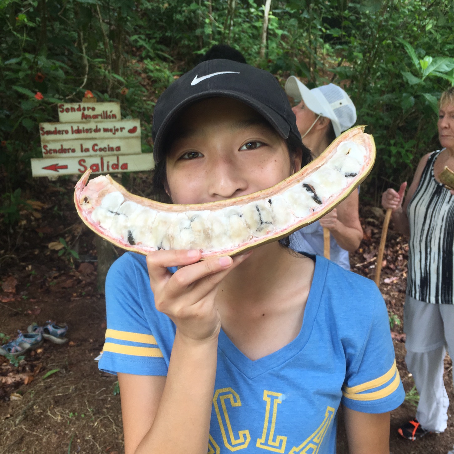 We met the local caiman that lives in the local swamp. Our guide Wayne scurried up a tree and dropped some fresh ice cream beans for us to taste.