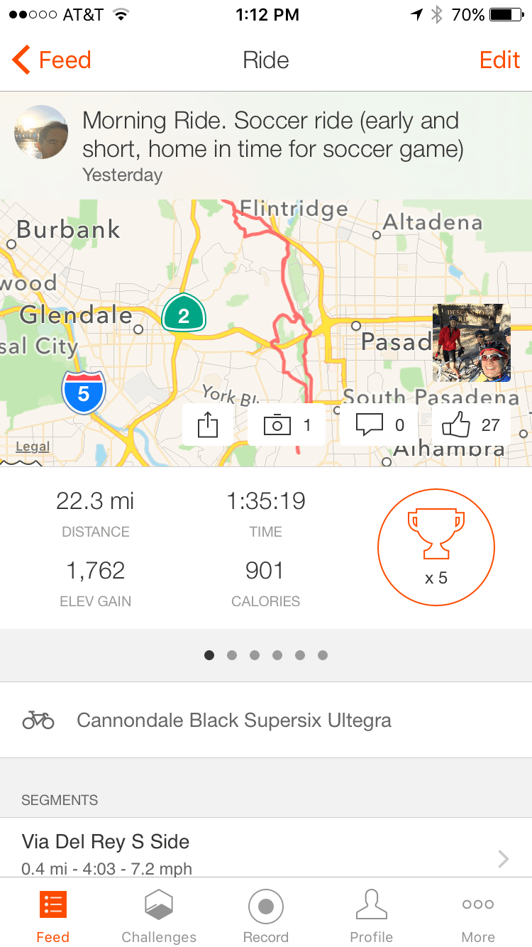 September 11, 2016September 11, 2016 Soccer Ride 22.5 miles, 1:35 moving time. Since my son’s soccer season has started up, I rode with few friend early and short on Saturday morning. We met close to my house and hit the local hills. I finished in 1.5hrs and got home right on time. Share this: Click to email a link to a friend (Opens in new window) Email Click to share on X (Opens in new window) X Click to share on Facebook (Opens in new window) Facebook Click to print (Opens in new window) Print Like Loading... Related