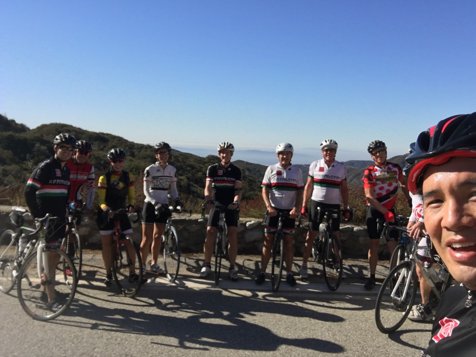 Although the Club started at Sierra Madre, I picked up the ride at Encanto Park. I had to finish a bit early to get home for a soccer game. The Ride went up the San Gabriel River Trail and up the Azusa Canyon Hwy 39. We turned right at East Fork and went over the bridge. We took at break at the Cafe for water and potty stop. Lynda found a new furry friend. Then the Climb up the Back Side of GMR (Glendora Mountain Road). It was a cool morning and it didn’t really heat up until we descended all the way down to Sierra Madre again. Tiffany had a good time recalling what the climb was like.
