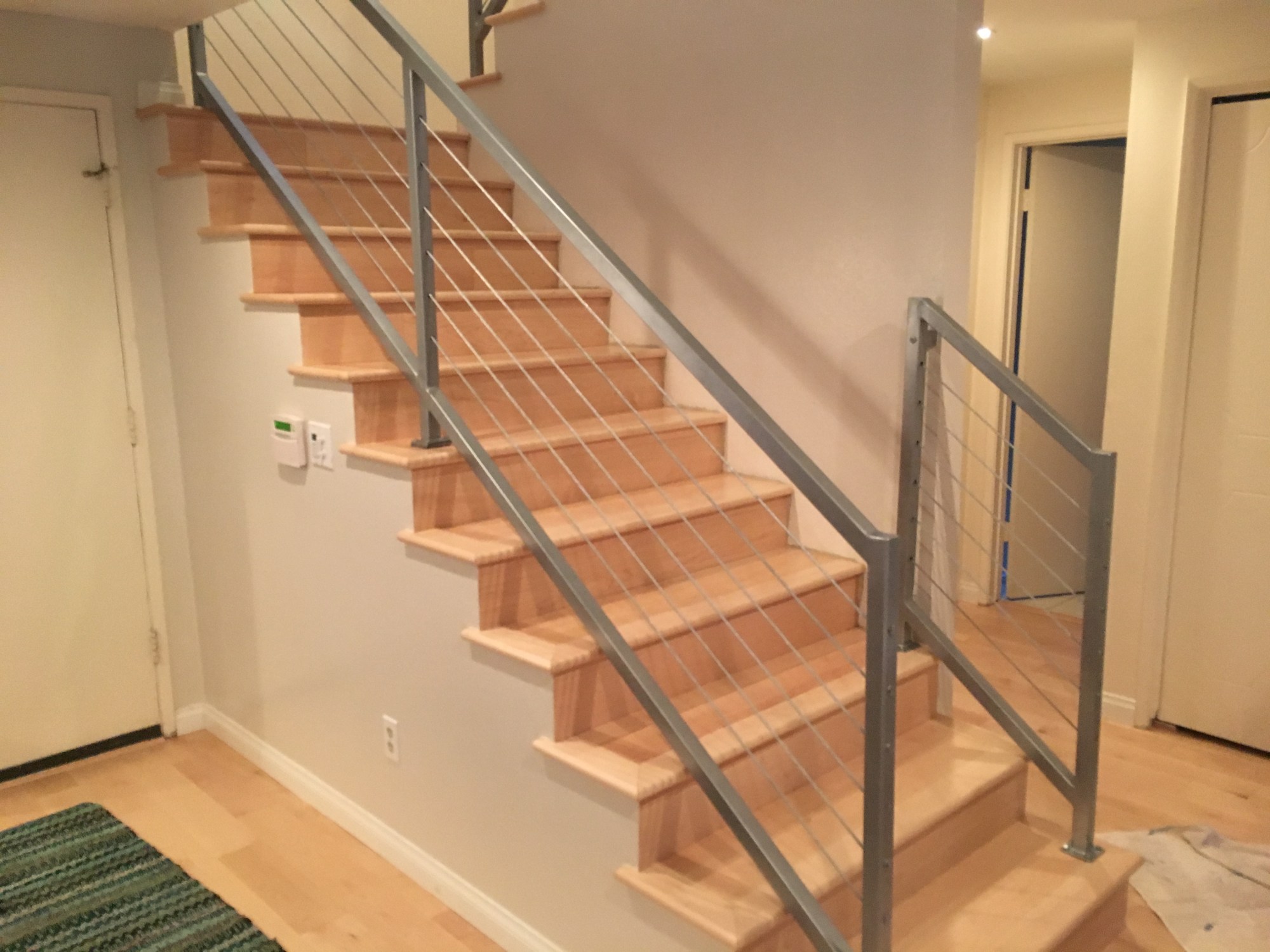 We finally finished up the stairway railing. The installer got it in Wednesday before Thanksgiving. Whew. We’d been living with no railing since the floors were done in July. No one fell down the stairs; but I had some close calls myself. As expected, working with contractors is frustrating, and in the end you just want it over. Overall, we’re happy how it turned it out. I like the stainless steel cable look: clean, modern.