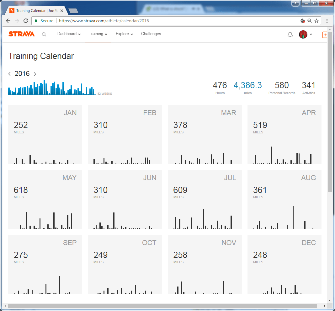 2016 Strava Totals for 2016. This was a big year for training. I stepped it up for Ironman Mont Tremblant in August. After IM, I tapered back and spend more time with family. The longest ride was in full Ironman training sessions.