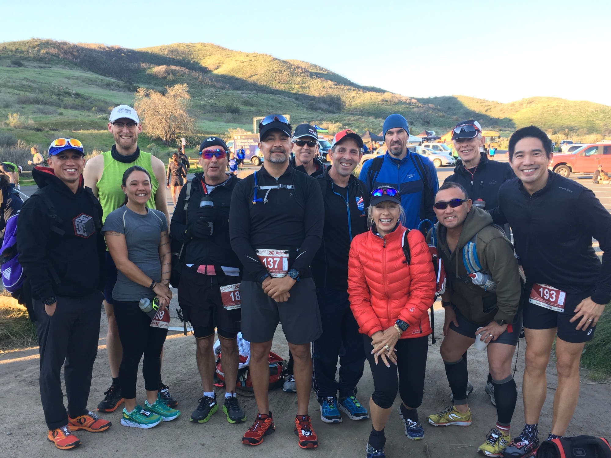 I hopped in Lynda’s van early in the morning. She took about 11 PTC racers. We met more PTC at the site. Packet pick up is at a shopping center in Newbury Park. Then, there’s a short bus ride to Point Magu State Park. The race is great, by which I mean, very picturesque but torture run. More than half is on fire roads, there are single track sections, climbing over tree sections, jumping over water sections. And limited support area. I had my camelback so that worked out fine.
