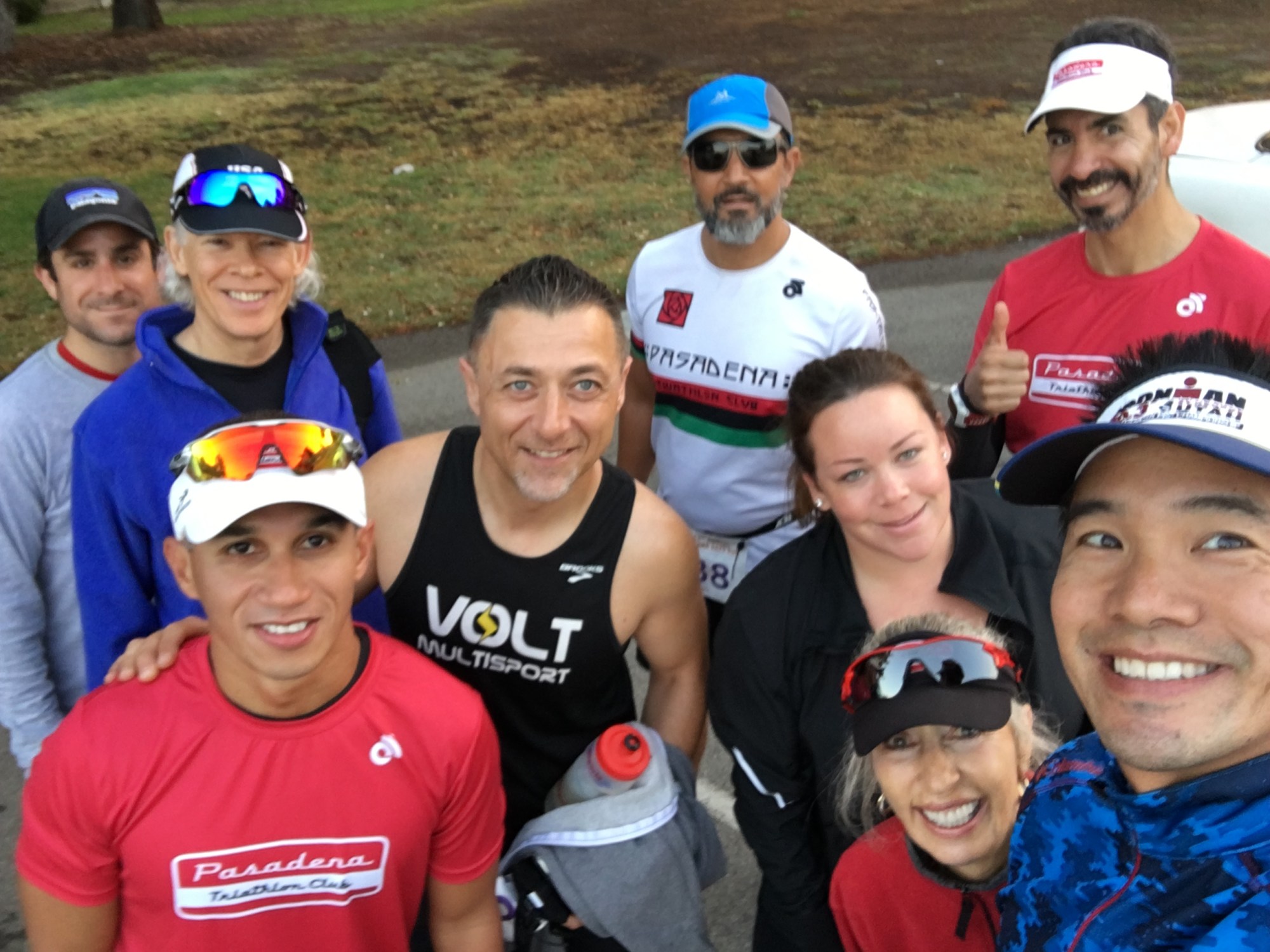 We met at Lynda’s and hopped in the Sprinter van at zero-dark-dark-4:30am. We got out to Fontana and picked up our packets and leisurely woke up. We got on the old school bus around 6am and rode up to the top of Lytle Canyon, to the campground in the San Bernardino Mountains.