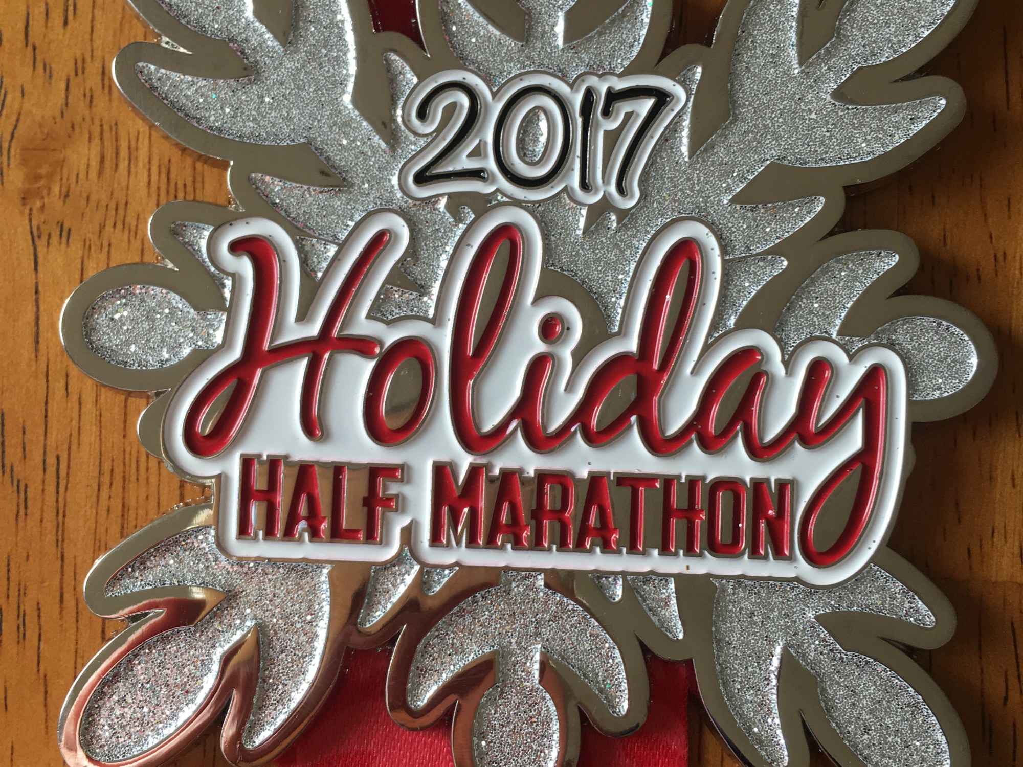 On a chilly morning, we raced the Holiday Half Marathon in Pomona Fair grounds. Once the sun came up, it warmed up just enough. This race is all rollers, up and down. There are some big hills too. And it finished with a couple miles of flat. The fun part of the race is all the people dressed up for Christmas. This race has the best medals, which are snowflake designs. A special bonus this year, they gave out soft fuzzy hats. Awesome. I felt pretty good from miles 1 to 6. I walked a little of each to the last few miles.