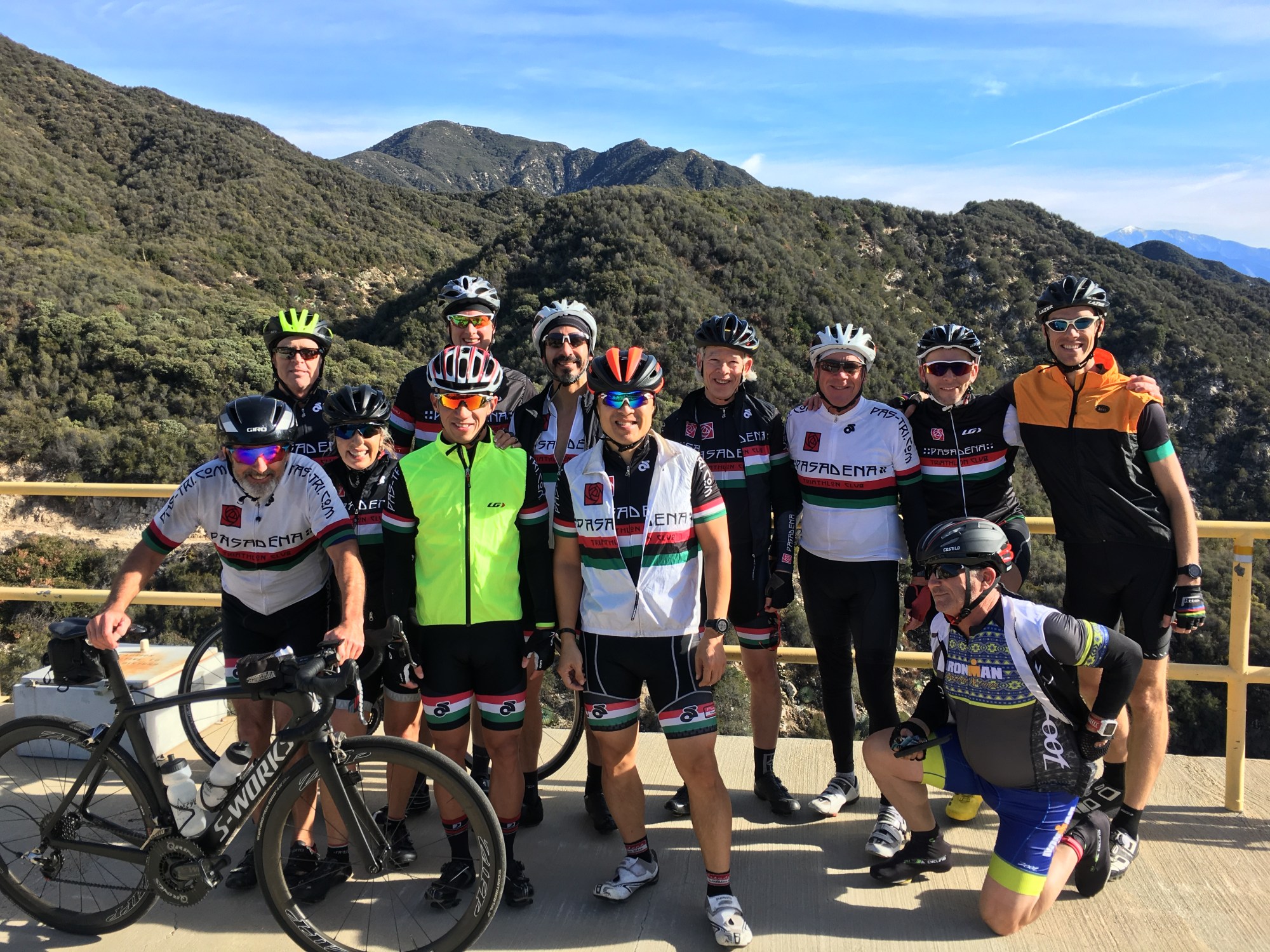 The PTC ride to Cogswell Dam started in Sierra Madre, on a cool 45F winter morning, with a promise of a warm day 80F. We rode over to Duarte’s Encanto Park and picked up a few more riders. Then, we rode up the San Gabriel River Trail to the end, and proceeded up Azusa Canyon. There were tons of riders out this morning. PAA (Pasadena Athletic Assoc) had a supported ride up to Cogswell, so we saw them all along the ride. We also saw Jeff and Richie fly past us, and wave. We regrouped at the Cogswell gate. After the gate, the rode is closed to auto traffic, as it winds along a scenic creek with trees and rocks. Beautiful. In the shadow of the canyon, it got colder 50F and colder 40F, as we continued on the slow grade up the mountain. The final incline is noticeably steeper 15%. We gathered on the top of the dam and it was lovely 65F and scenic up there. The descent was cool. By the time we reached Sierra Madre it was mid 80F. Iced coffee at Starbucks.