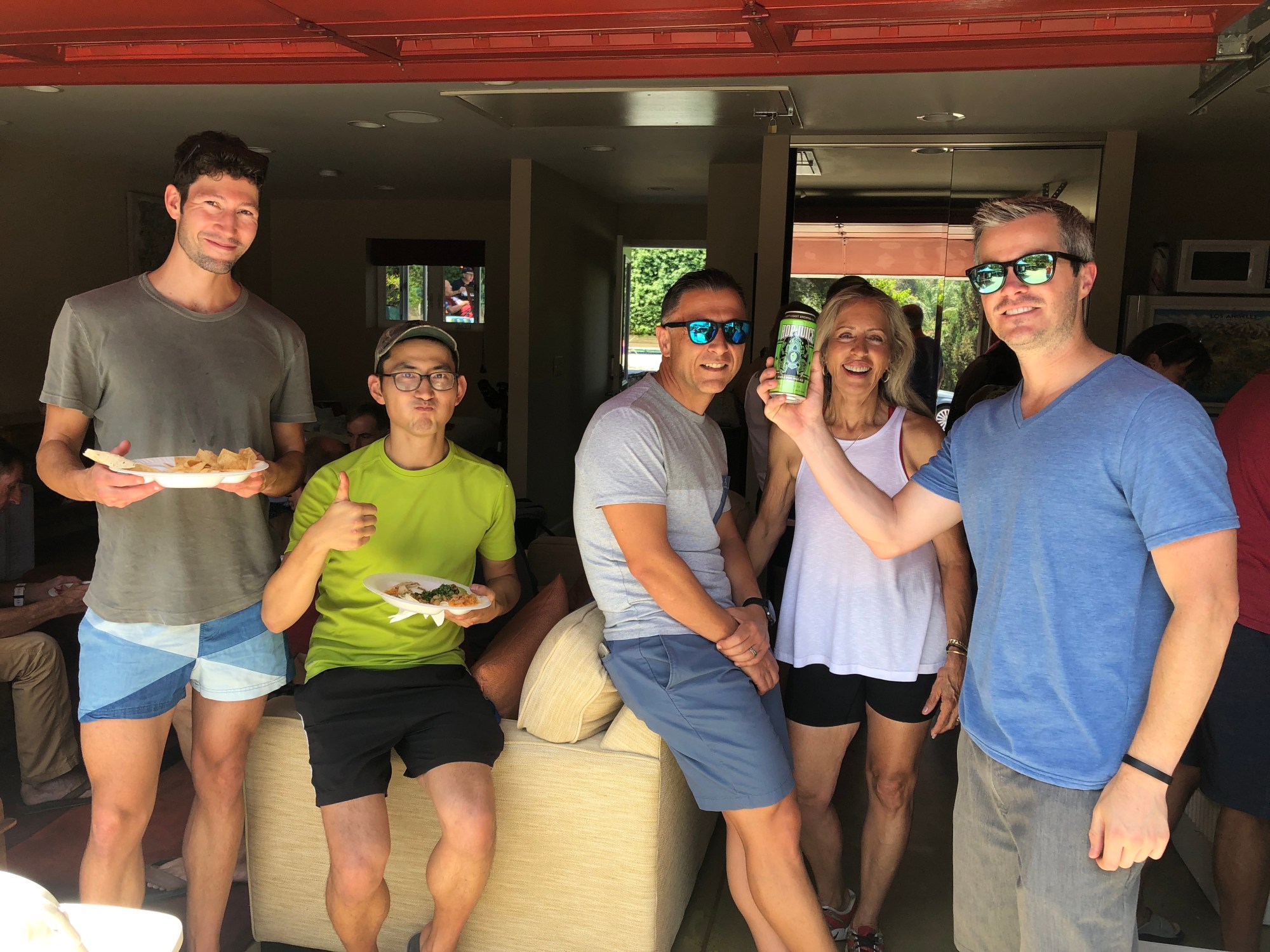The PTC Summer Party was a blast. Special Thanks to Bob and Brigette Montes for hosting the party at their lovely home! The Saturday ride to Mt. Wilson started and ended at Casa Montes. The garage AirBnb provided showers and freshness after the ride. Kids jumped in the pool, while the adults chilled on Jamba Juice smoothies, white wine sangria, beers of all sorts, red and white wine, and Aloe GLOE! For lunch we had a Taco Truck. Carnitas, asada, pollo. Salsa Mild, Hot and HOT HOT. Apple pies, cookies. Stuffed.