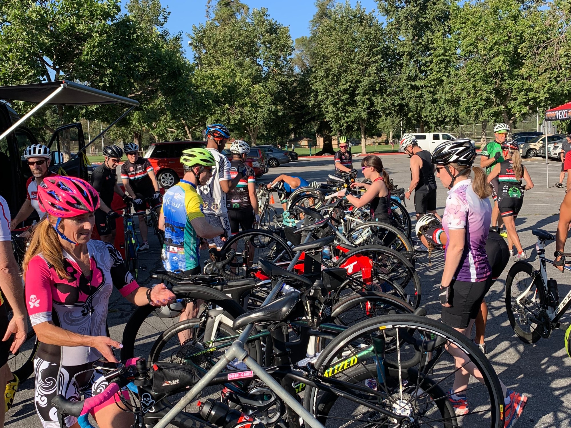 GT and Leanne gave a Transition Tips. Run your bike in the transition area (really, Lynda). Clip your shoes into the pedals. Remember where your bike is. Hook bike on Rack, front facing out. Stage your run gear by the front wheel.