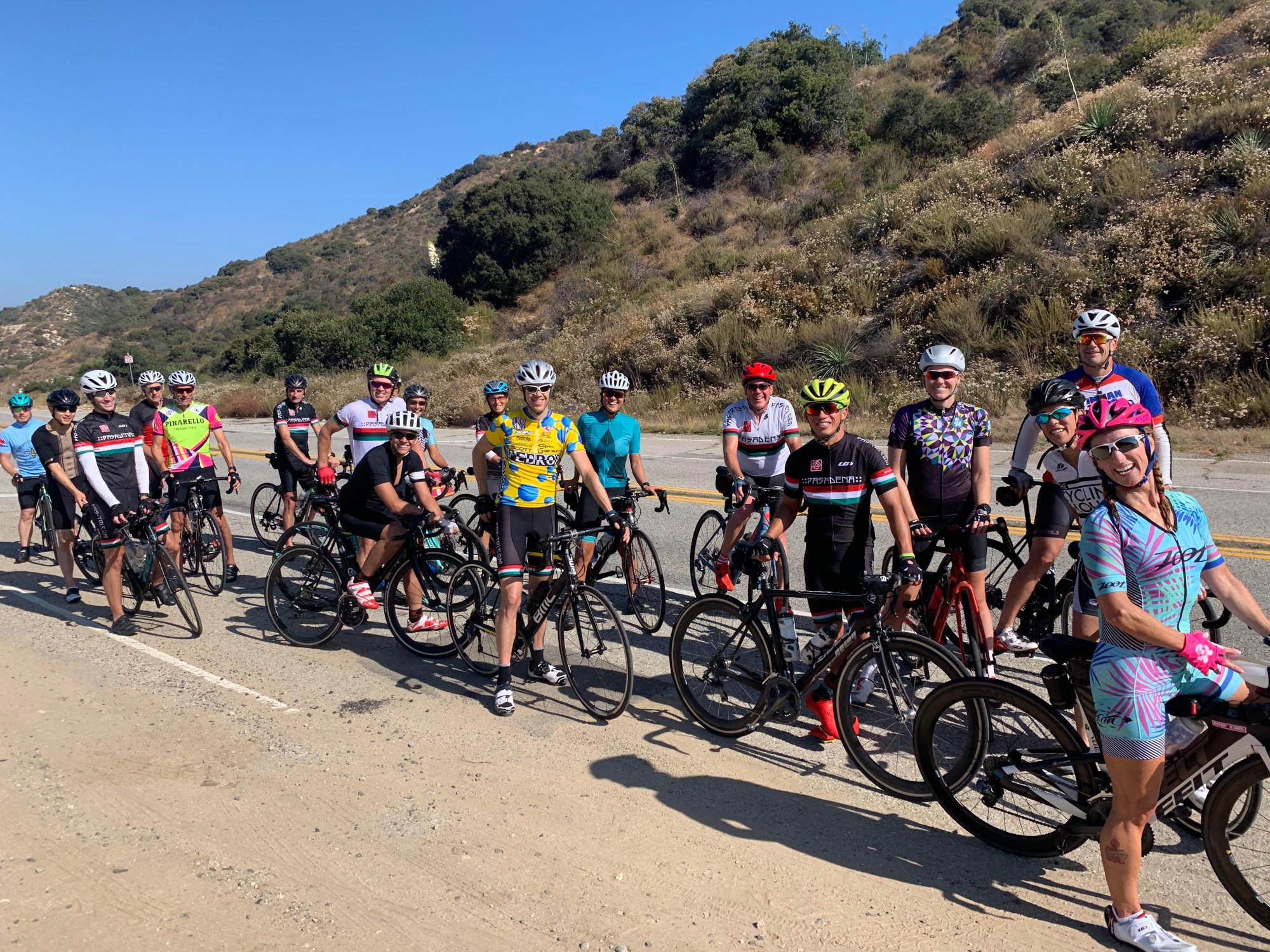 On a nice, sunny, summer morning, the Club rode up La Tuna Canyon. The Club started and ended at Jones Coffee, with snacks on the club at the end. GT was a great ride leader. He said we’d be back by 10:30 and he had us back before then. The little bit of fog burned off, by the time we rode through Burbank. The re-groups at Eagle Rock, Sunland, and at the top of La Tuna were rolling re-groups, at least for Kirk, keeping the group on a tight riding schedule. The long climb up La Tuna Canyon warmed us up. The descent was super fast. I got a couple Strava trophies on the descent today! We finished with a climb up Linda Vista and Arbor. Back at Jones Coffee, we refueled with cold brews and lattes.