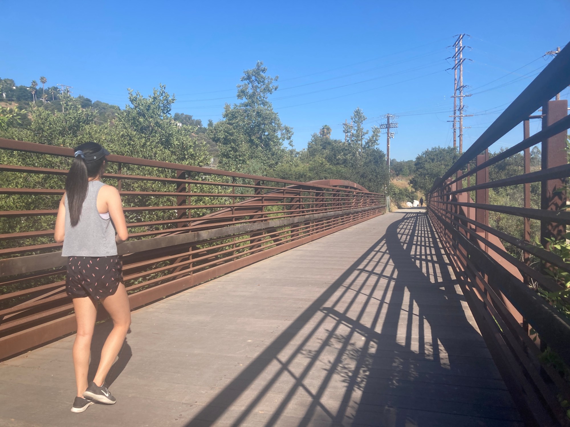 She and I ran a partial loop for 6.7 miles. We saw the Hahamonga Wash area, and the Devils Dam. We ran some of the trails to the potty stop. On our way back, we met some horses on the trails. It was a warm one this morning.