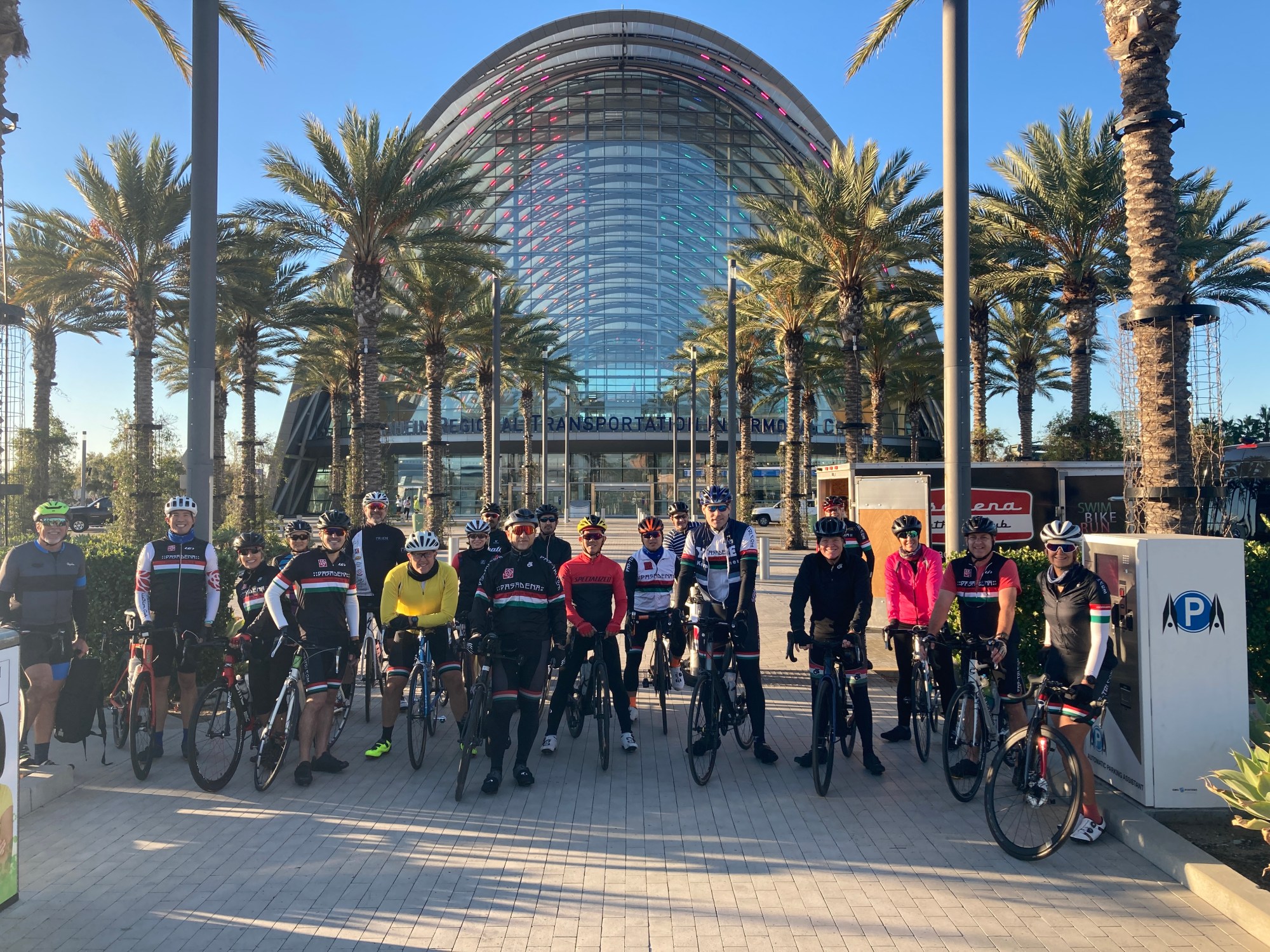 Mile 1-13 Club met at the Anaheim Transportation Intermodal Center (Amtrak Station). We loaded our day bags in the the Trailer. Thanks for SAG support, YURI! This is a one way ride all the way to Solana Beach. Anaheim River Trail. Ride started along the river trail. Cleaned up embankment, looking good. A Group went out super fast. Geez. Regroup at the end of the river trail on PCH, first potty stop. We shed a few layers and tossed them into the trailer. Awesome support day.