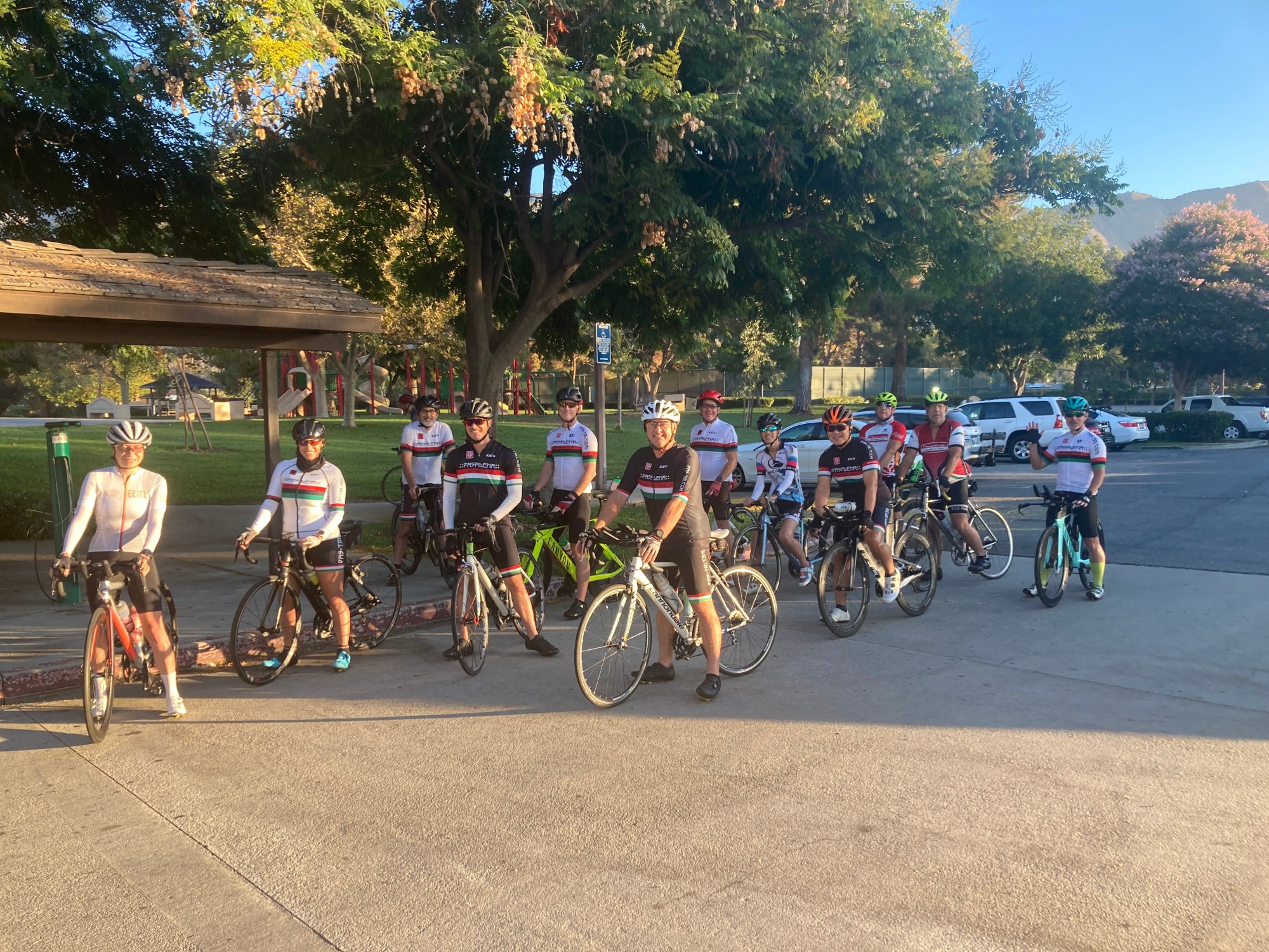 On a warm Labor Day Weekend Saturday, the Club met up early for a long ride. There were two groups going out. The Full Ironman crew left at 6:30am and the 70.3 Ironman crew took off at 7:00am. And a few folks started with the wrong group and went a different distance. I was in the 7am group. We started from Encanto Park in Duarte. It was cool enough in the morning, but the forecast was for high 90s by the mid-day. So we took off and kept up a good pace to try to beat the heat.