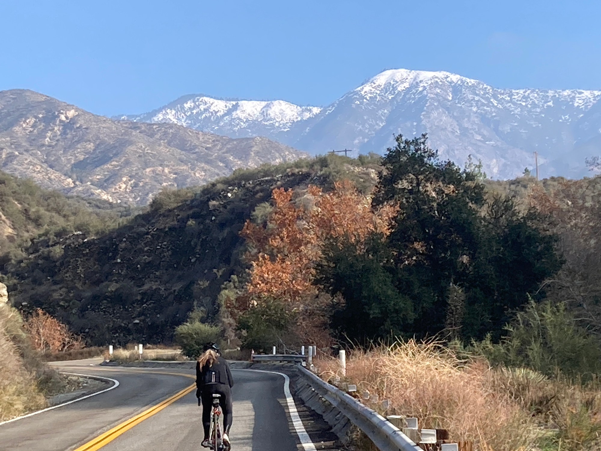 Club met on a Wintry Morning in Sierra Madre. They rolled over to Encanto Park in Duarte and picked up locals and me. We rolled across the bridge and rode up the San Gabriel River Trail to the end and merged onto Hwy 39, Azusa Canyon Road. We rode up and back down.