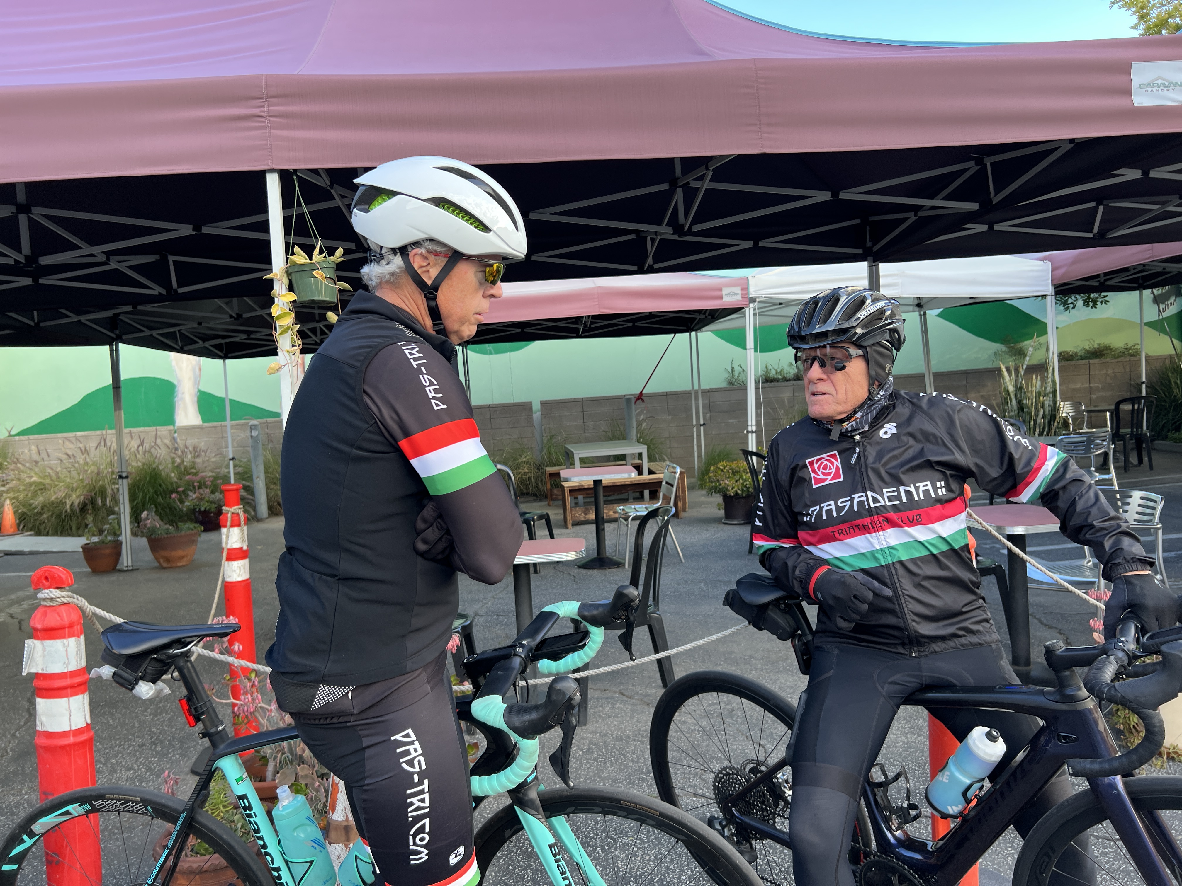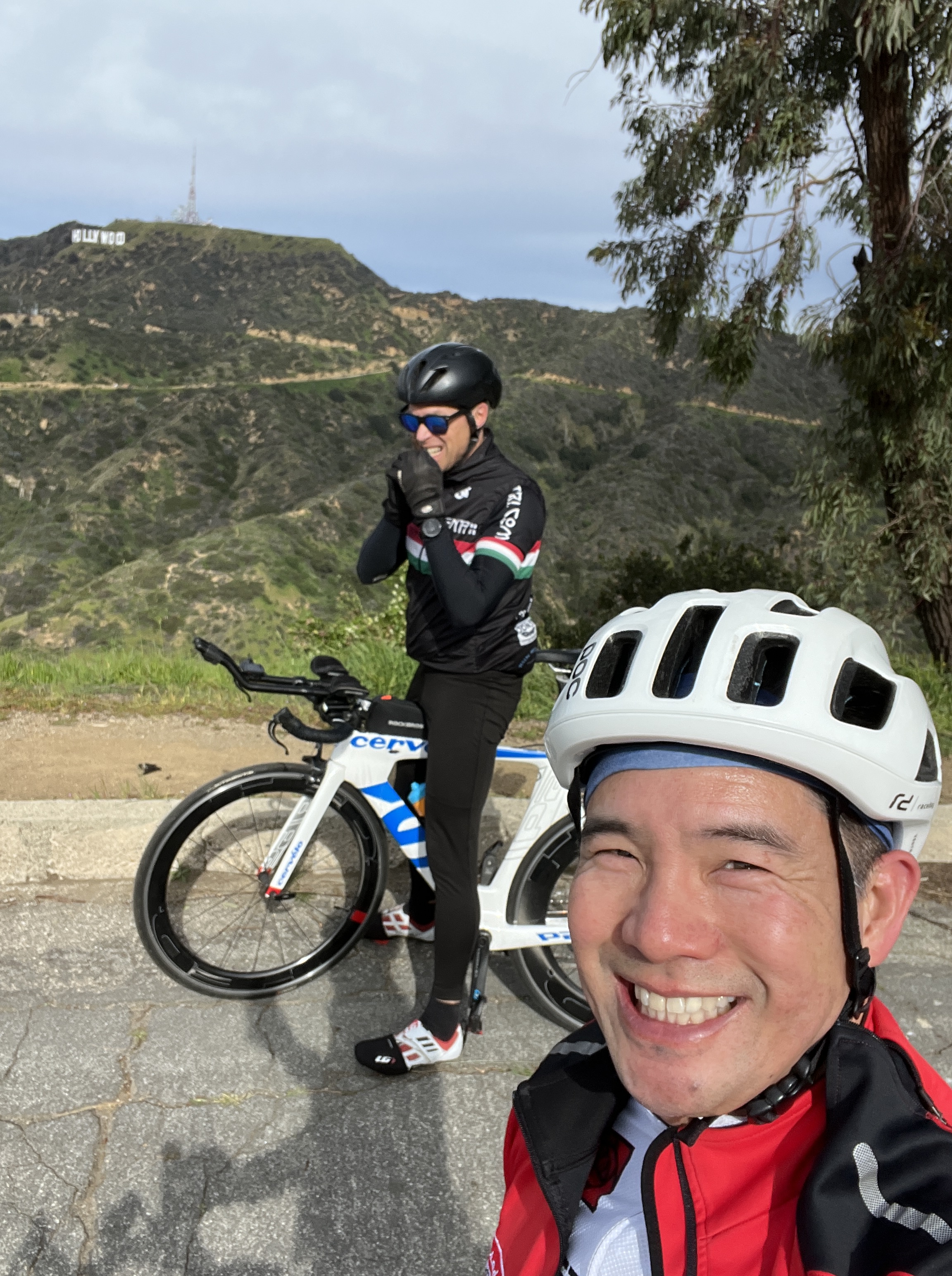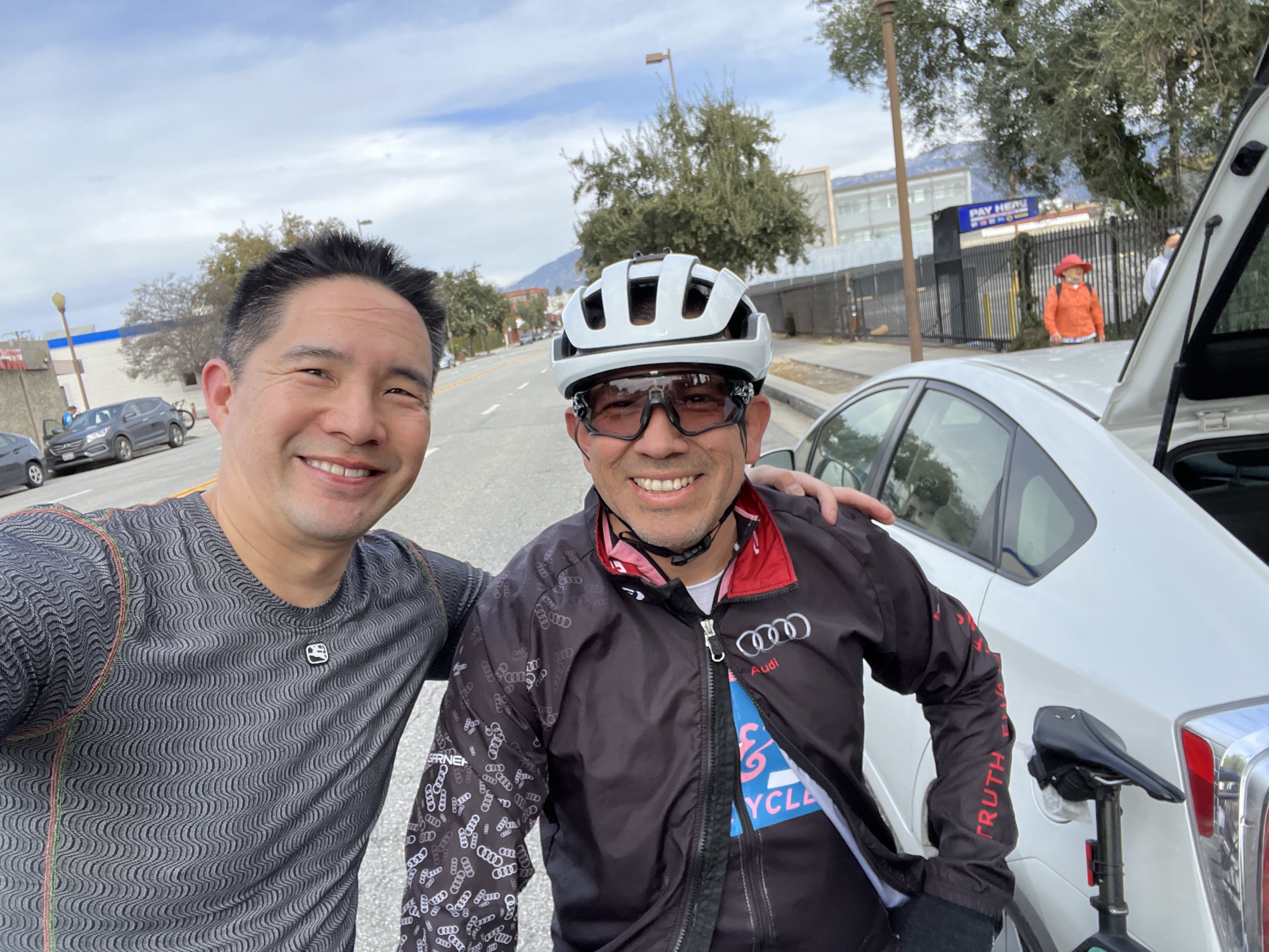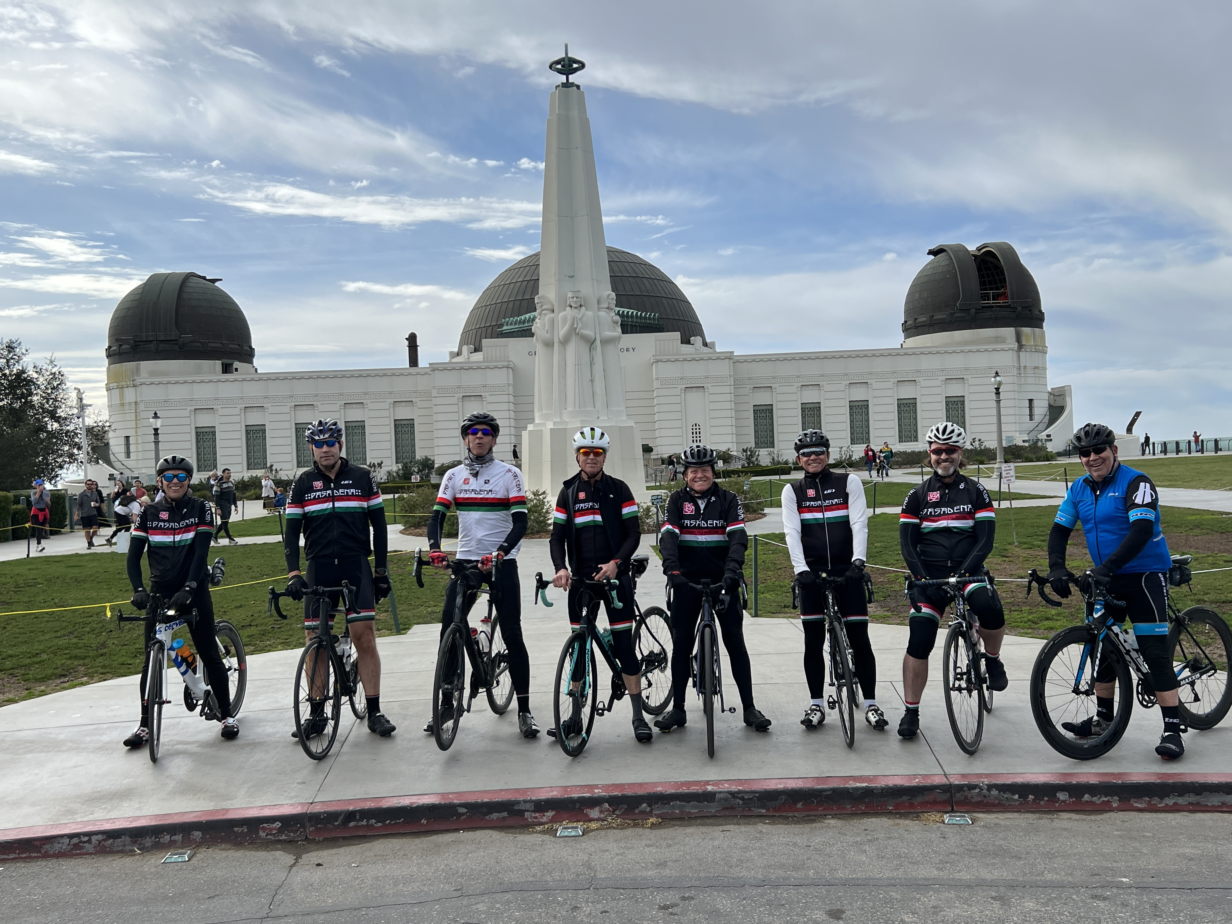 Mile 10: Rode through Glendale along Kenneth, turned south on Sonora. I got a flat on one of the serious potholes. Mike O supervised and I quickly changed my flat tube and got rolling. We caught up to the group at the Observatory.