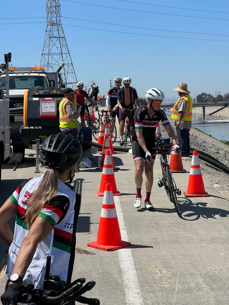 Mile 5: Pick up at Arcadia 3 Hole Golf. Bunch of members joined us here. Shout out to Tamil, who’s Raoul’s identical twin brother. That was fun. Gregg, Bob and Lynda helped Trevor change a flat at the start. They joined us at Arcadia about 5 minutes after the main crew took off, but they returned shortly after they got to the flooded bath path and the locked alternative.