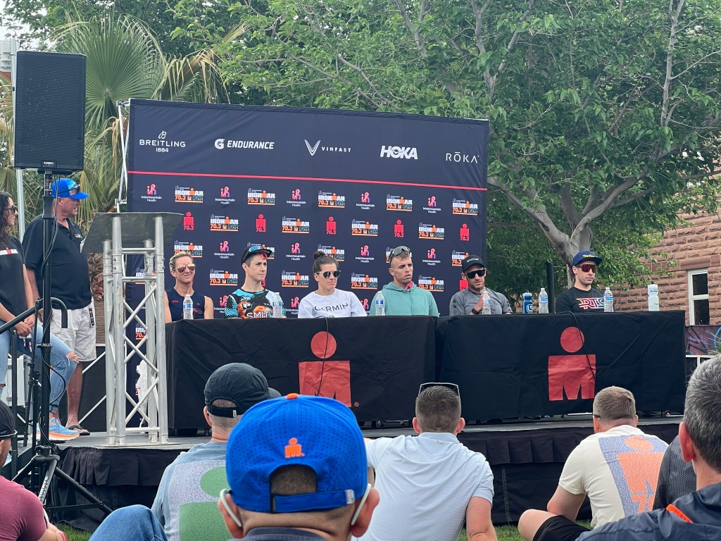 Lynda, James and I started with a trip out to Sand Hollow Reservoir. We intended to do a practice swim, but it was VERY windy and the chop in the water was too much. We passed on the swim. Bummer. Pretty day, We drove back to town and did our next best event: SHOPPING! Ironman t-shirt, hoodie, swim towel, head band. Good times. We stayed for the Athlete Briefing. Lots of little details on this race. Point to Point. Meaning Bus Ride to the Swim start. Bike check in on Fri. Run Check in on Fri. We then tried to go for a practice RIDE. But, when we rode out of the hotel, it was VERY WINDY and started RAINING. So, we went about a mile and turned around. We met up with Alvin, David, Ivan, Carrie, Maria, Greg, Mike, Julian, and Paul for Dinner at Texas Roadhouse. Yummy, meaty.