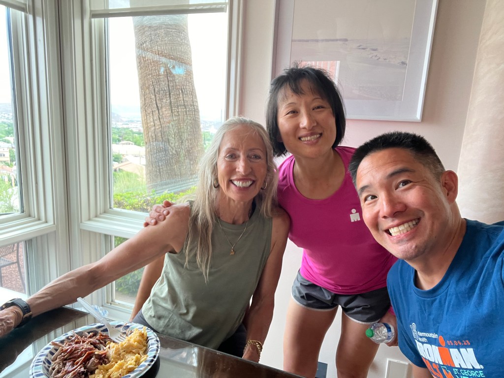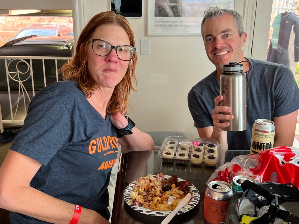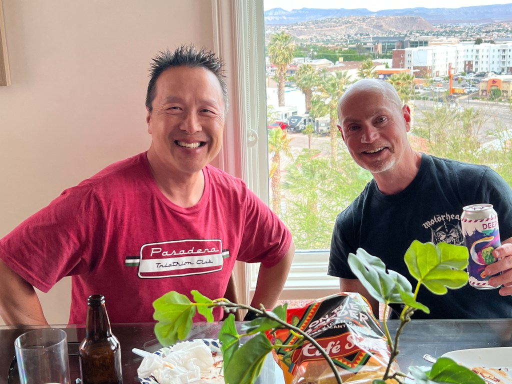And Thur. Most of us drove up to St. George. It’s about 1.5 hrs. Past Las Vegas. Very Drivable. I rode up with Lynda in the van. Good times catching up. We stayed at the Best Western Abbey in St. George. On the Southwest side of town. Very convenient to race stuff, and food and stuff. James and Angie also stayed here. Greg M. Stayed next door at the Quality Inn. Alvin had the AirBNB House. We had the Post-Race Party there. Rick, San, Julian and Susie, David, Carrie and Maria stayed at the White House.