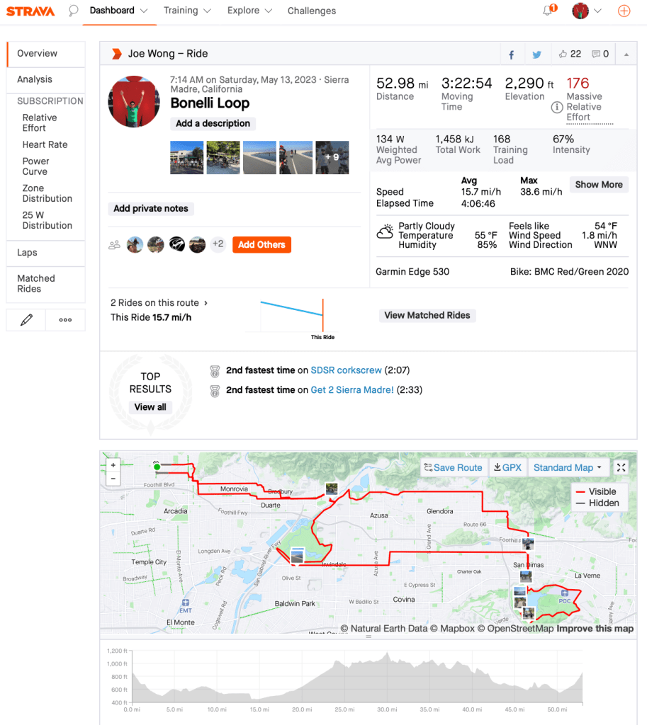 52.98 miles, 3:22 moving time, 2,290 ft elevation gain