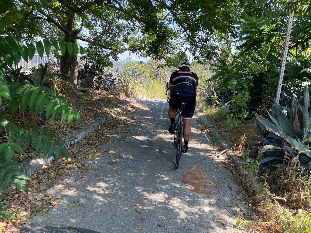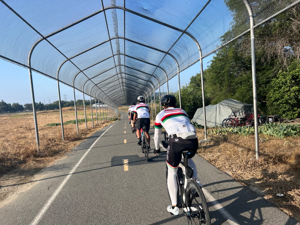 Mile 7: End of Upper Rio Hondo River Trail. Crossed Rosemead Blvd and picked up Lower Rio Hondo River Trail. Group was zipping along. Somehow I was on the front group with Gregg, Julian, Rob, Richard, and Brian.