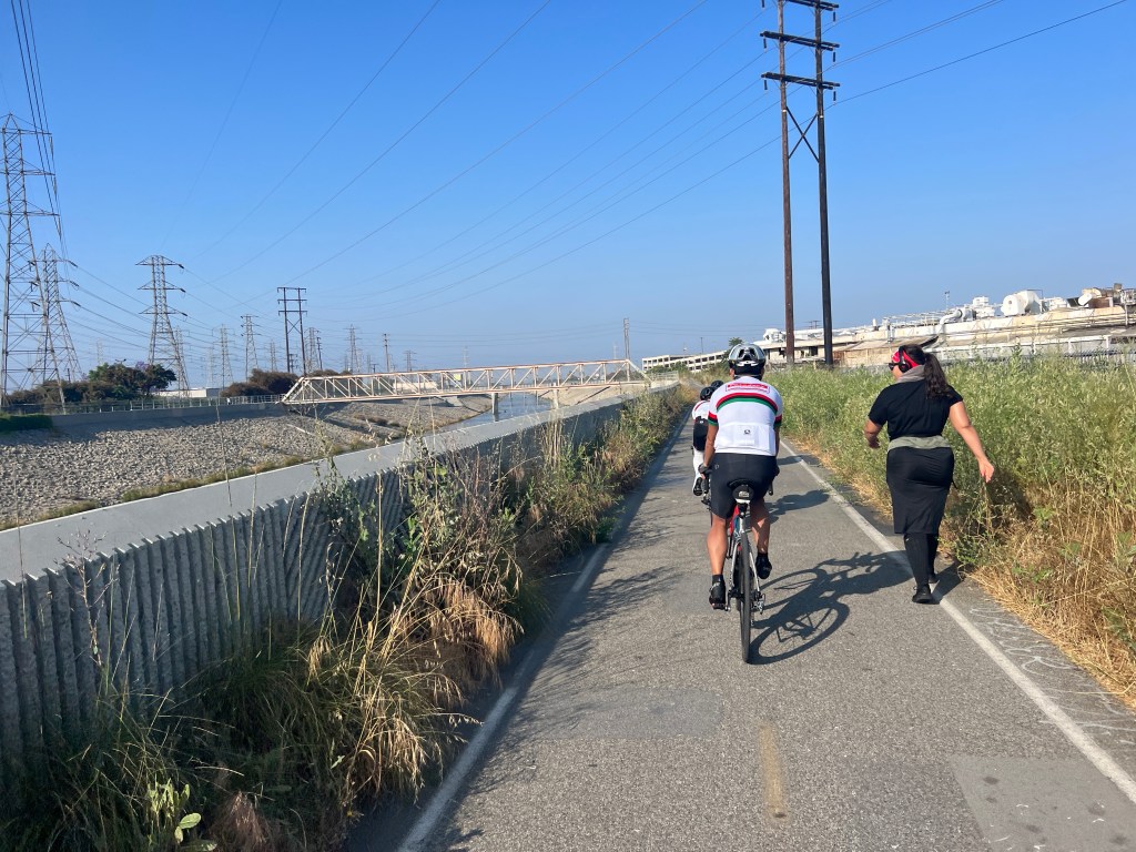 Mile 16: Merge onto Los Angeles River Trail. Team kept up a zippy pace. Bert and Elsa flipped it.