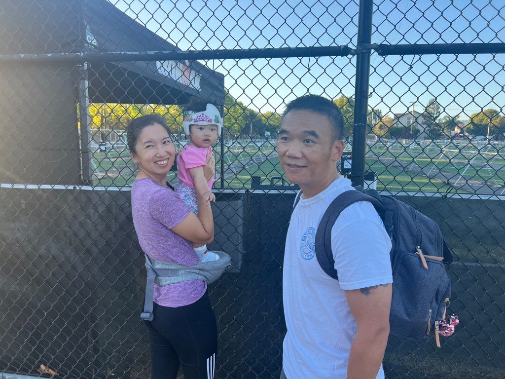 Long run walk from beach to Soccer field. You run along a train tracks. Cement and asphalt. Booties were perfect. Other folks put shoes along the T1 sides. I saw Sue in transition. I also saw our old friend Gio; he ran past me on the long run. I wore a cycling jersey and vest. Cloudy.