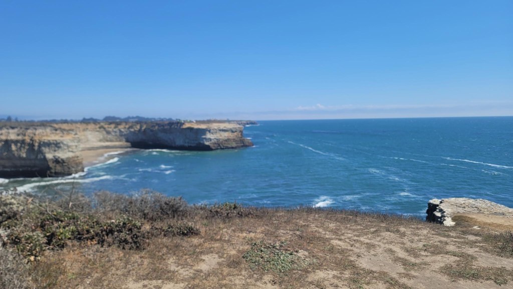 Mile 5-6-7-8: Loop through Wilder Ranch. SPECTACULAR views of the coast. Run along trails on the top of the bluffs. Waves crashing onto rocky cliffs. Beaches. It was so beautiful. Rando runner Jonathan asked my to take his picture, and then he took a pic of me and I entered my phone #, and he sent me the pictures! It was so cool to have those pics at Wilder Ranch. I saw John at mile 7.