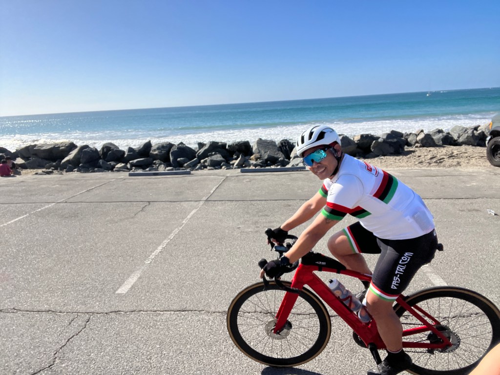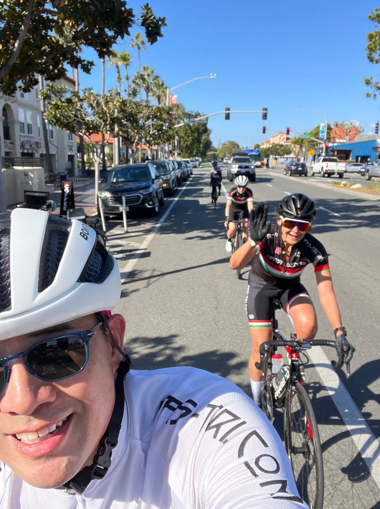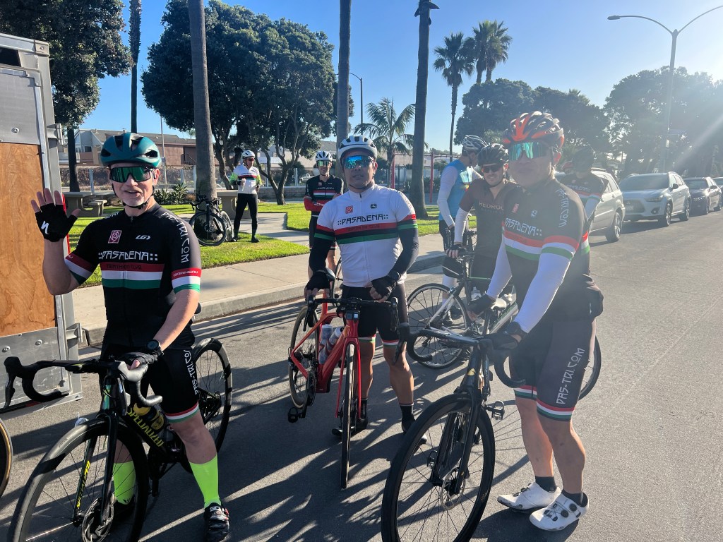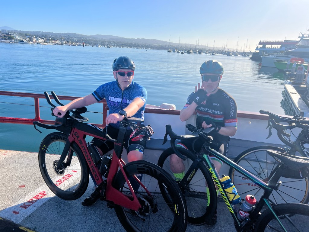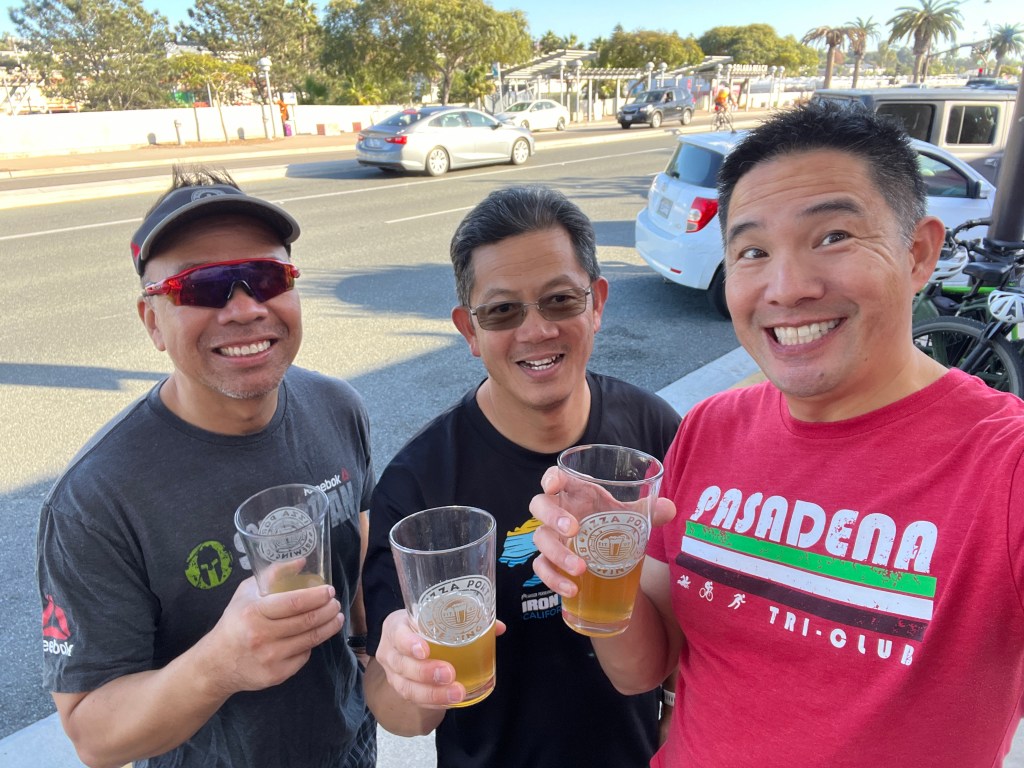 Mile 80: Pizza Port. Loaded bike into Trailer. Thanks, Lucas! Changed clothes. Pizza, Beer, Friends. We saw Johnna and Barry. Some old PTC’ers, with daughter and baby! Kevin connected with friend from SD, who shared frightening shark pics from cage adventures. Chartered bus picked us up at 3:30p. Drove back to Anaheim. Whew! Big beautiful day. Epic ride with the Club. Thanks to Lynda and Lucas for doing a lot of the leg work to make this happen. $65/person to cover the SAG and Bus, and trailer.