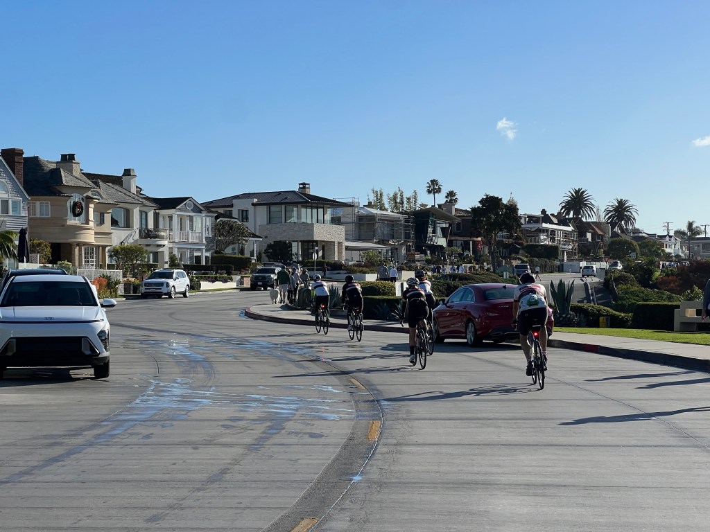 Mile 20: Ride along Ocean Blvd inn Newport Beach, along the bluffs above the beach. Sparkling spectacular views of the Corona Del Mar Beach. We swim there sometimes. It’s great. This is a ritzy neighborhood.