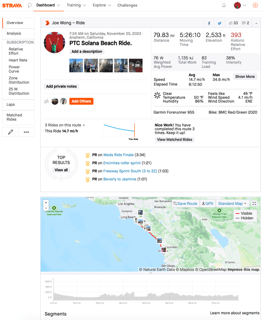 Mile 23: Got back on PCH. Rode through Lagunga Beach. Crystal Cove. Amazing views. Rollers along the beach side cities.
